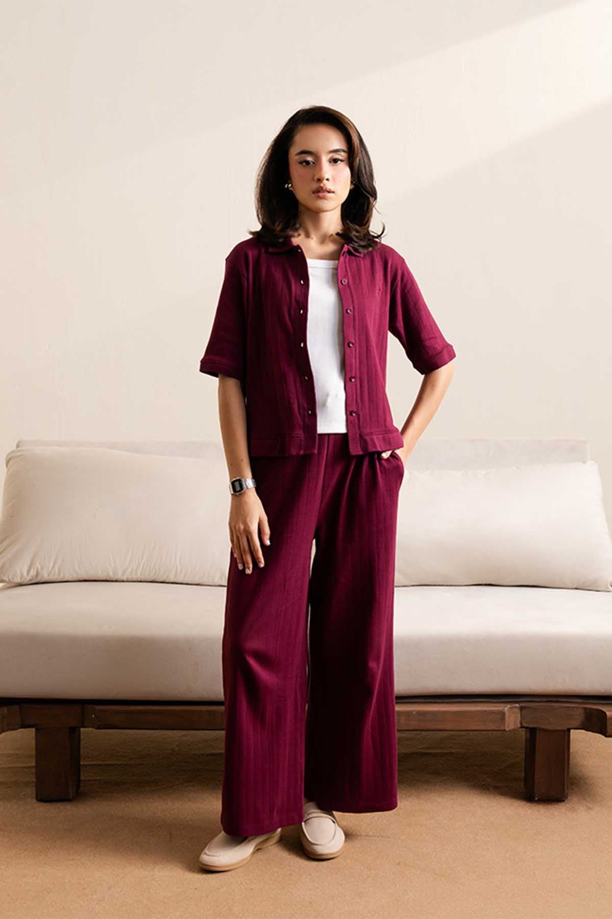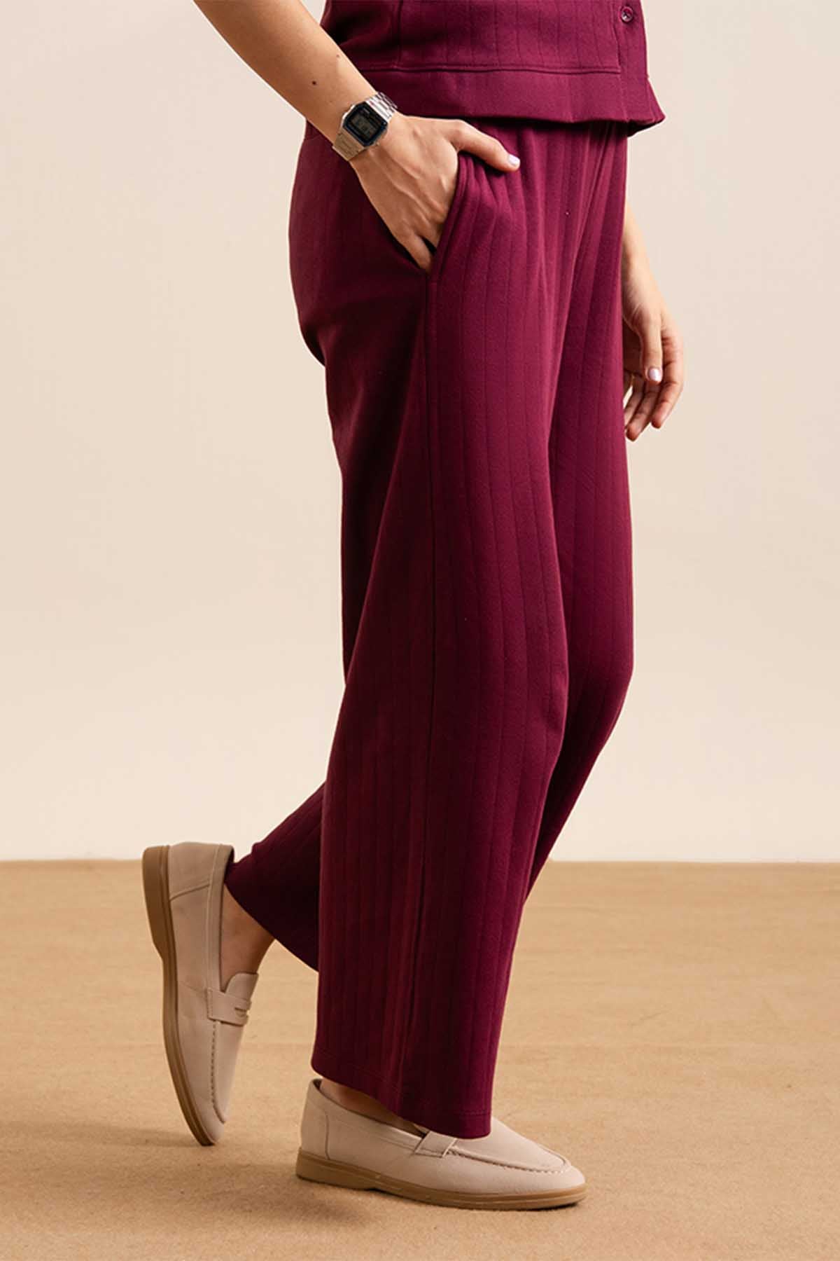 Crafted for comfort with a refined edge, these drop needle trousers are made from 100% cotton interlock fabric, offering a smooth hand feel and natural breathability. The subtle drop needle texture adds depth to the relaxed silhouette, making them a versatile choice for everyday wear.