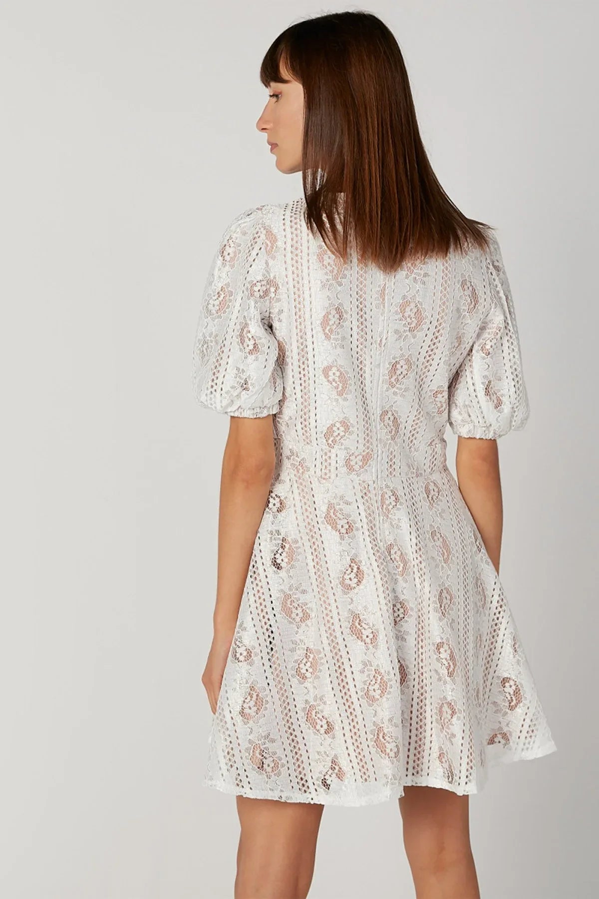 Premium quality Splash Women Lace Mini Skater Dress with V-neck and Short Sleeves White color