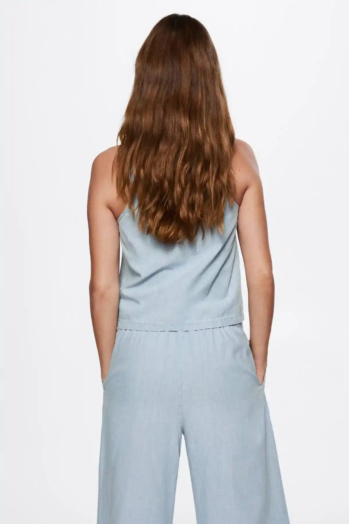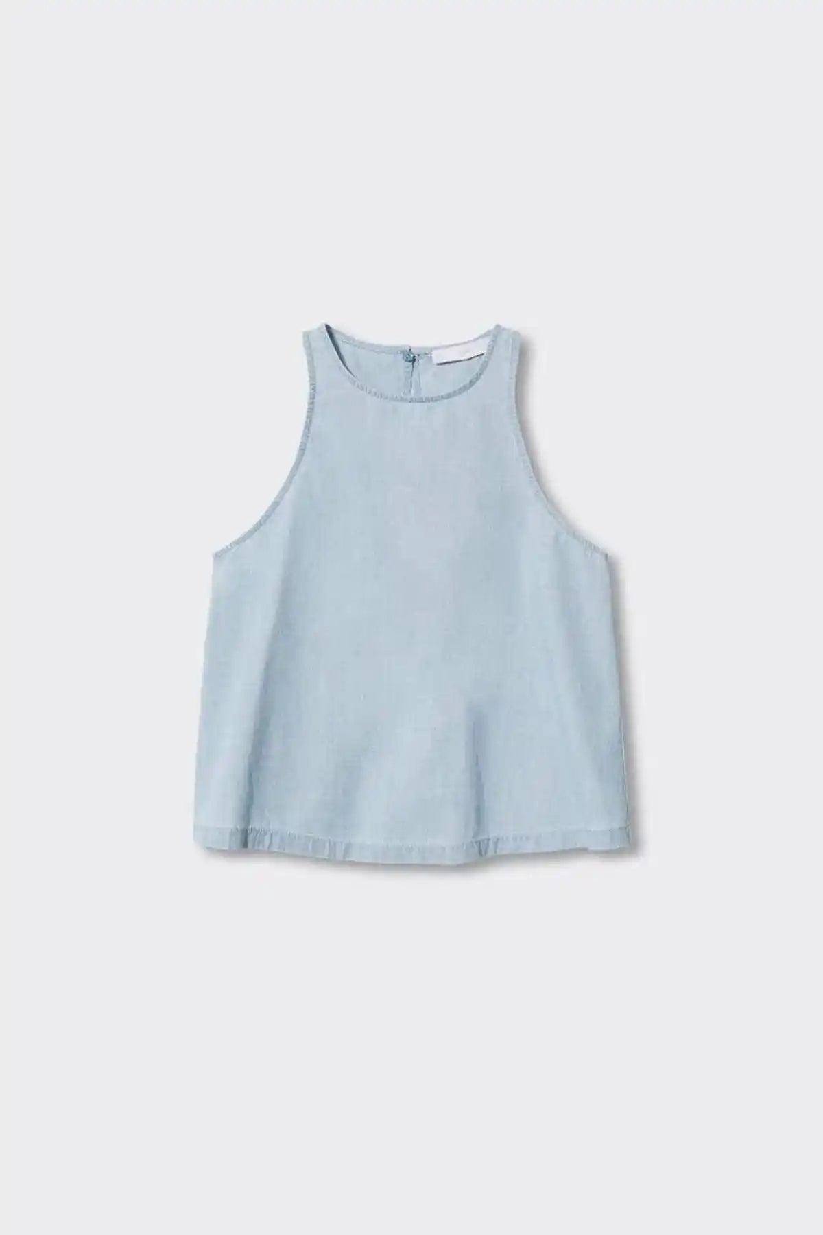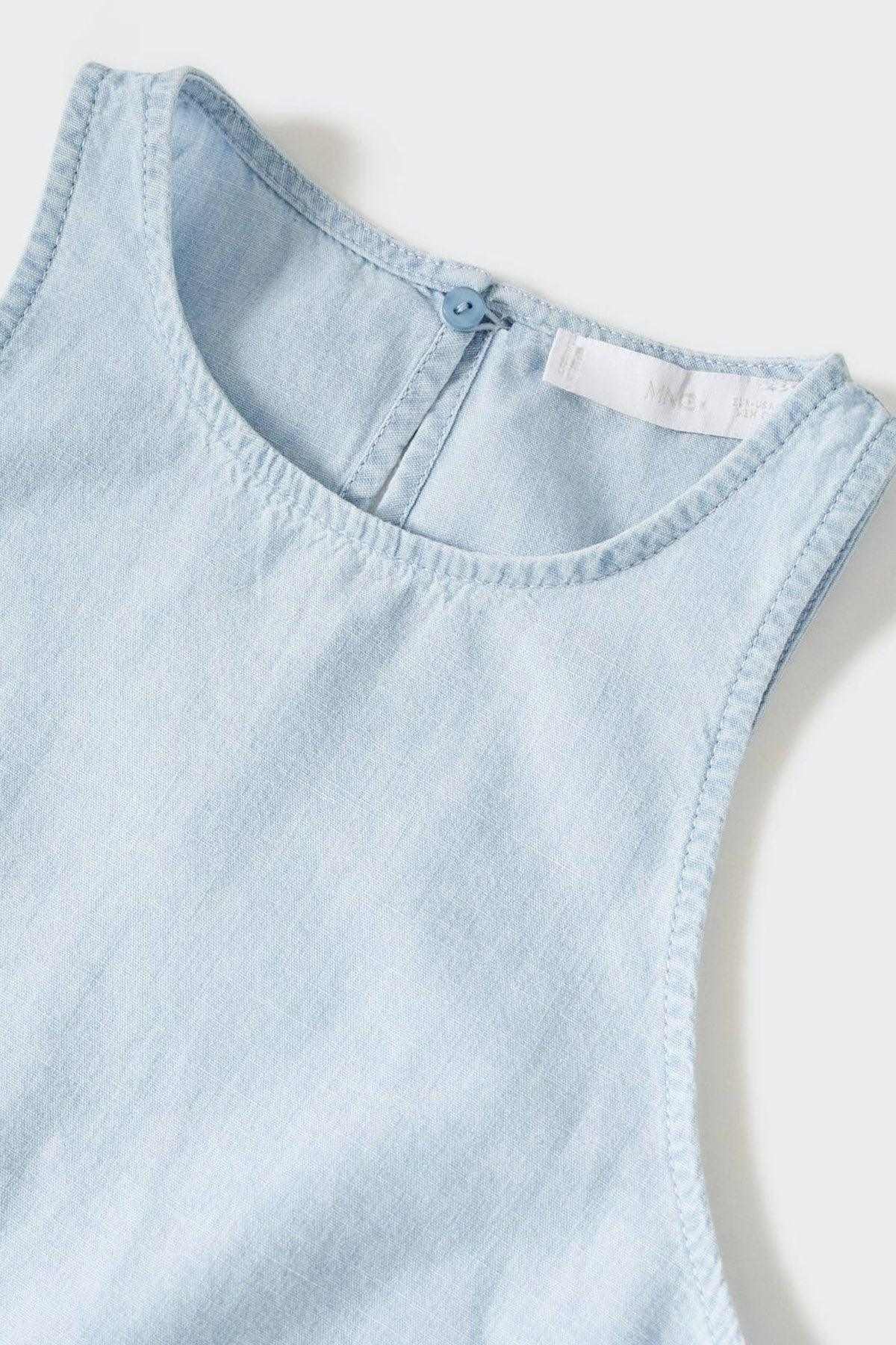 00% cotton fabric. Flowy fabric. Straight design. Rounded neck. Sleeveless. Button fastening at back. Co-ord.