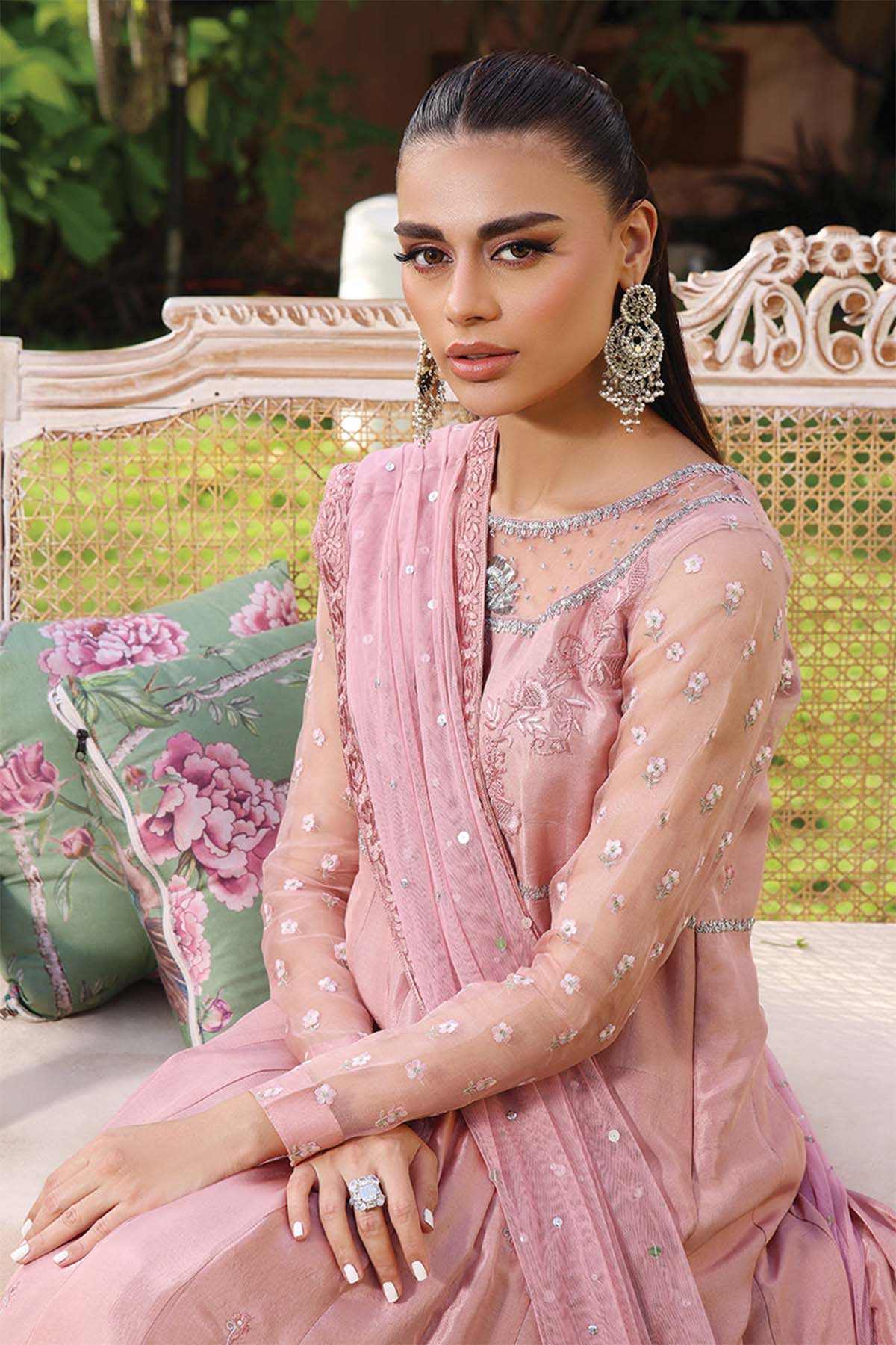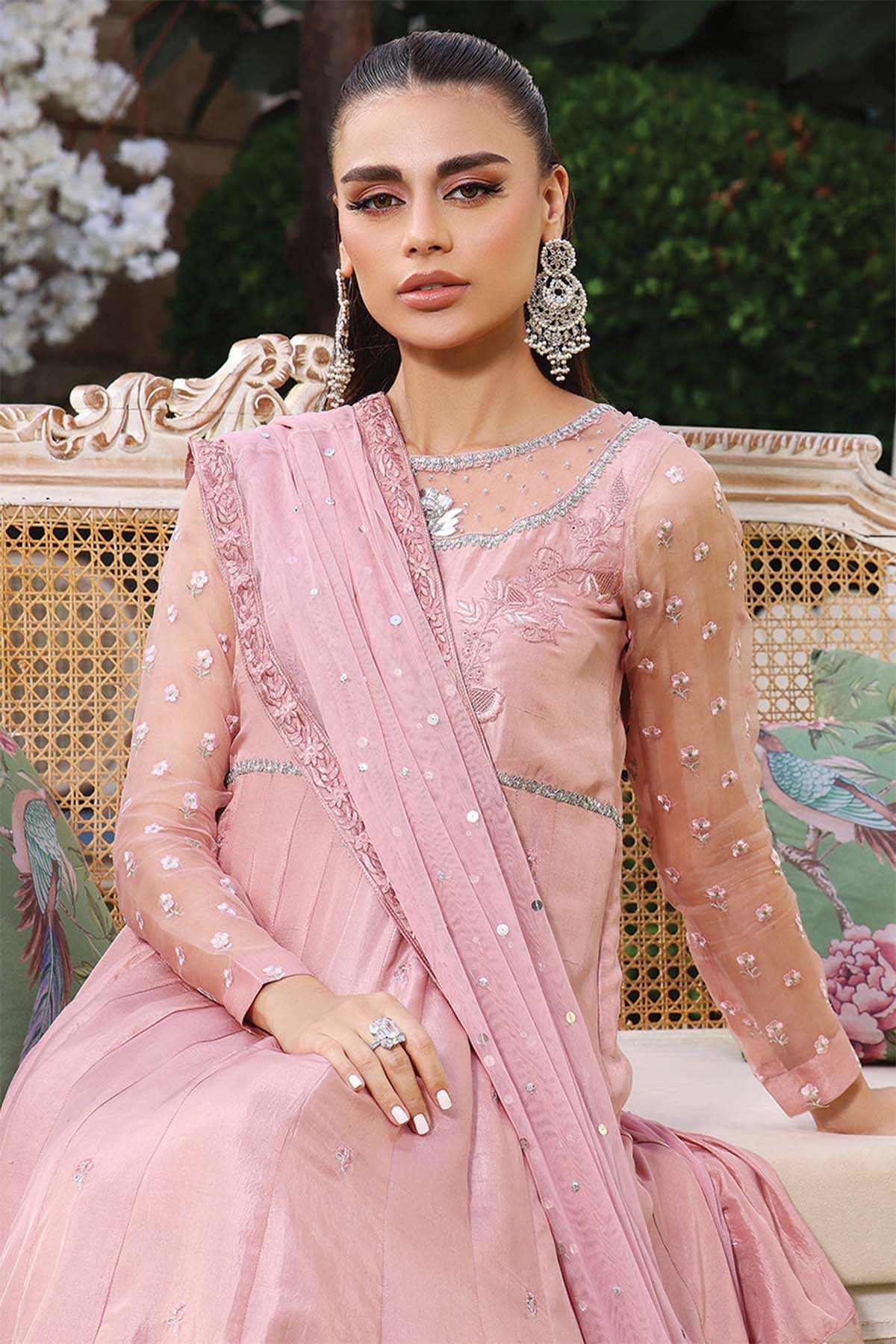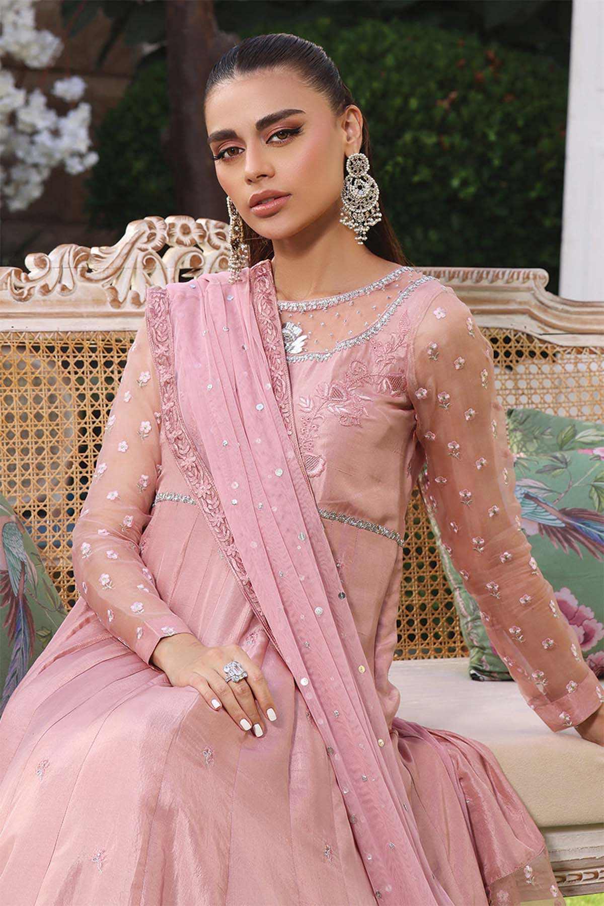 This Luxurious Raw Silk Kalidar A Divine Shade Of Blush Teapink Is Adorned With Hand Embroidery Embellished With Kamdani Pearls And Sequins All Over The Bodice And Detailed With Floral Organza Sleeves, The Figue-Flattering Silhouette Has Schiffli And Embroidered Laces On The Daman Adding That Extra Bit Of Glamour To Your Outfit, Paired With Draped Net Dupatta Detailed With Sequins And Lace Pair With Trouser