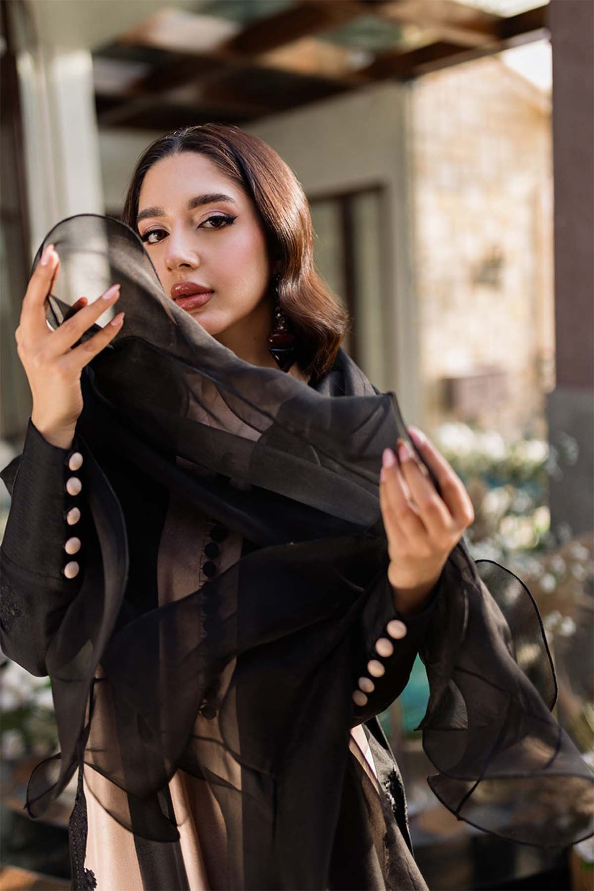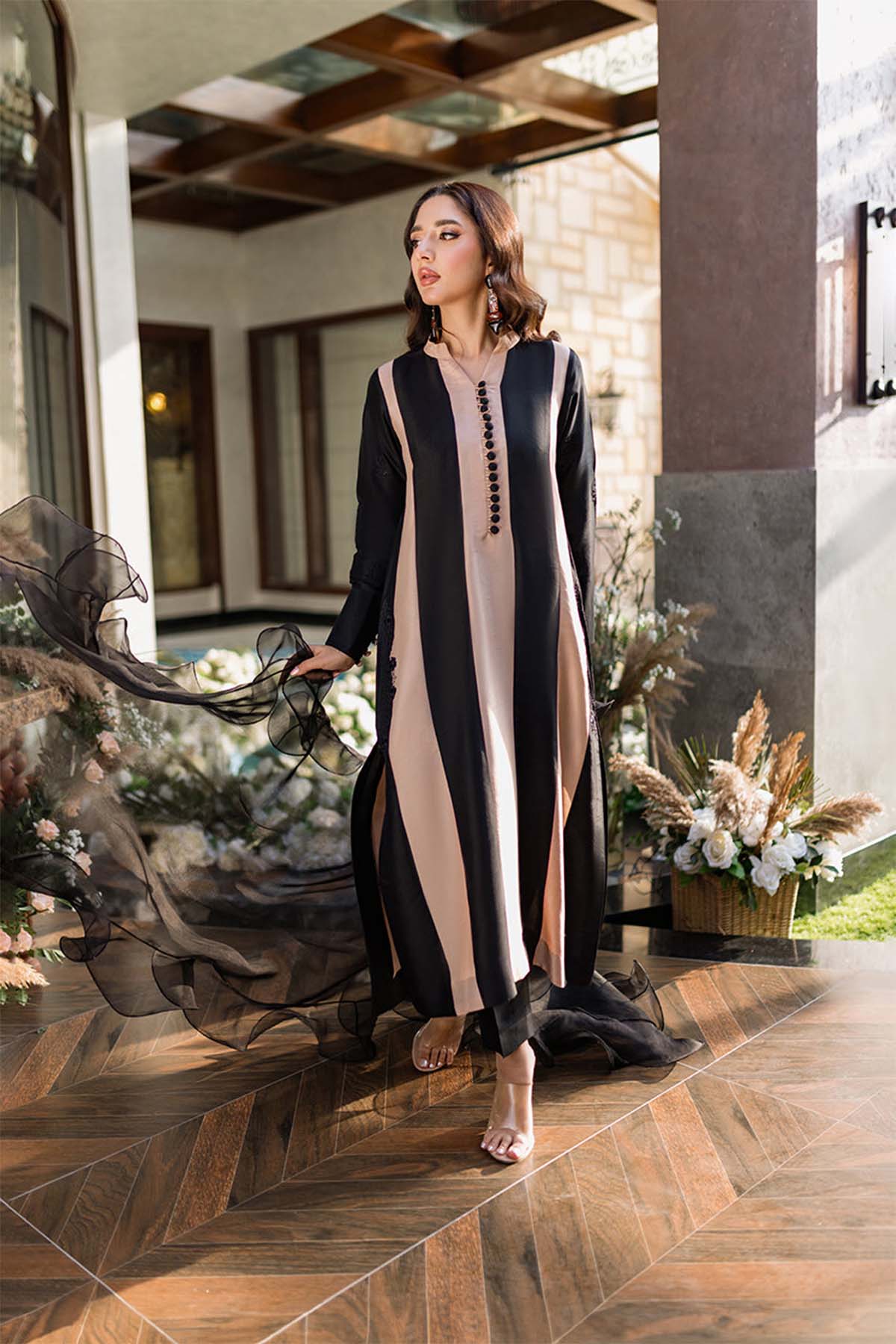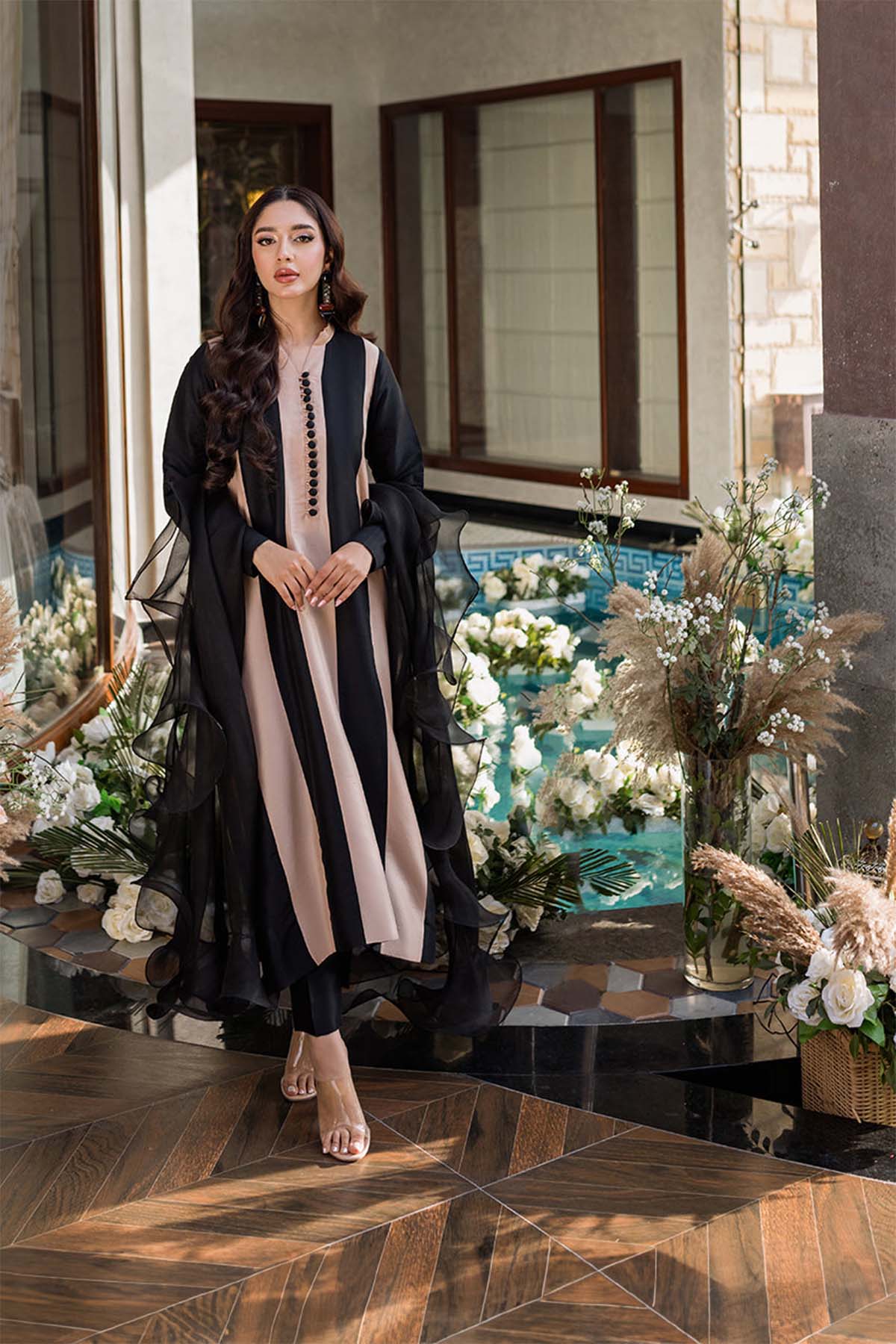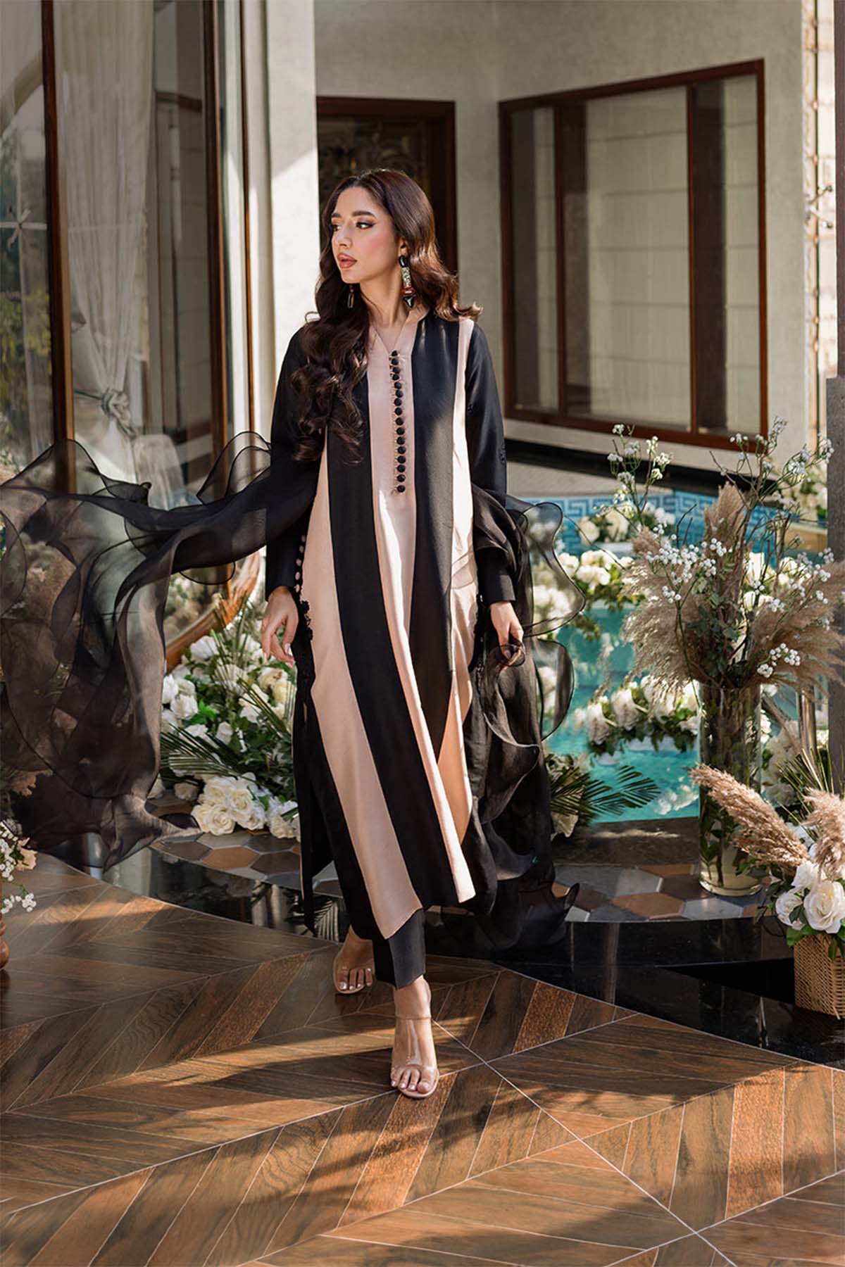 This Stunning Monochrome Shirt Steals The Spotlight With Its Intricate Machine Embroidery On Pockets, Adorned With Loops Buttons On The Neckline. Paired Effortlessly With Straight Trousers, This Ensemble Strikes The Perfect Balance Between Sophistication And Modern Chic. The Pièce De Résistance Is The Ruffle Dupatta, Adding A Touch Of Playful Elegance To The Overall Look. Embrace The Art Of Monochrome With This Ensemble, Where Every Detail Is Thoughtfully Curated For A Statement-Making Style That Captivates At Every Turn.