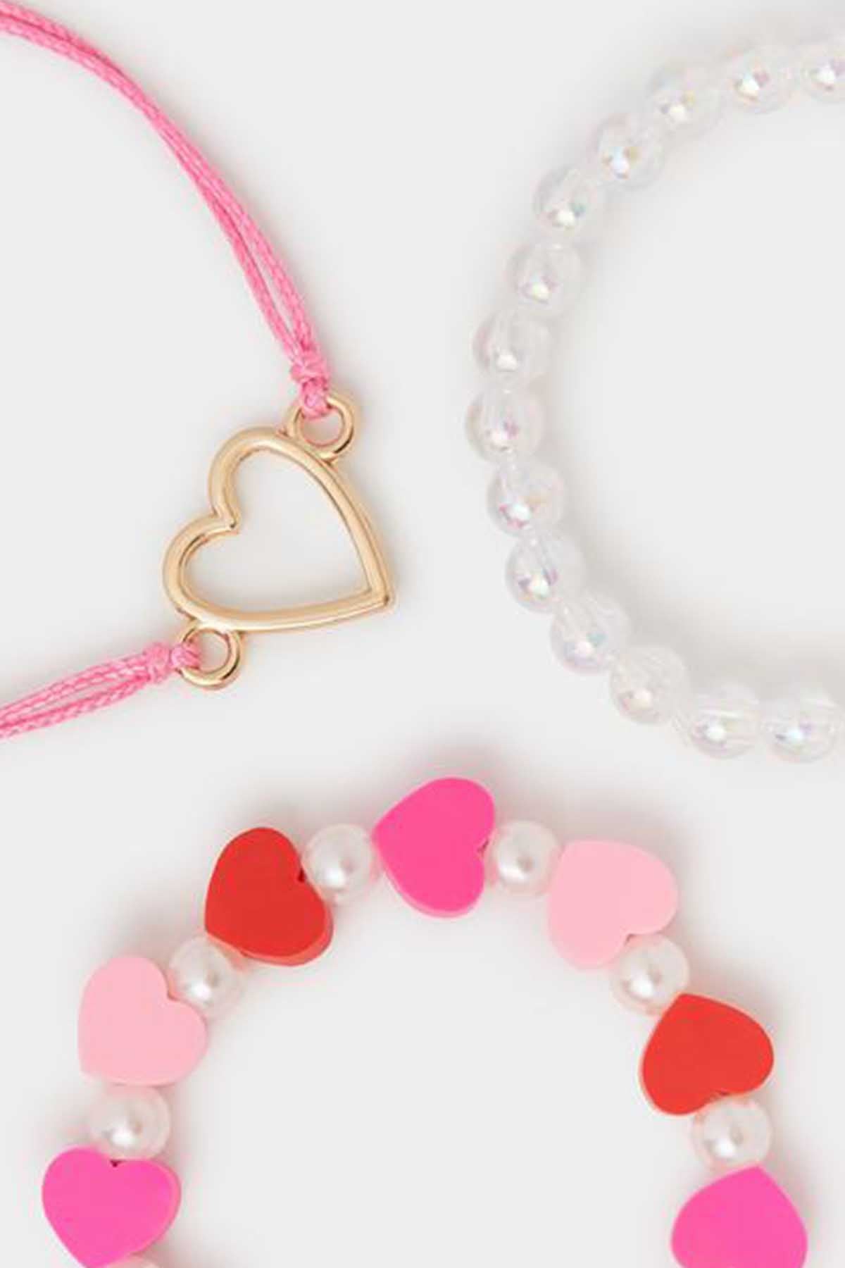 3-Pack Girls Heart Bead Bracelets
