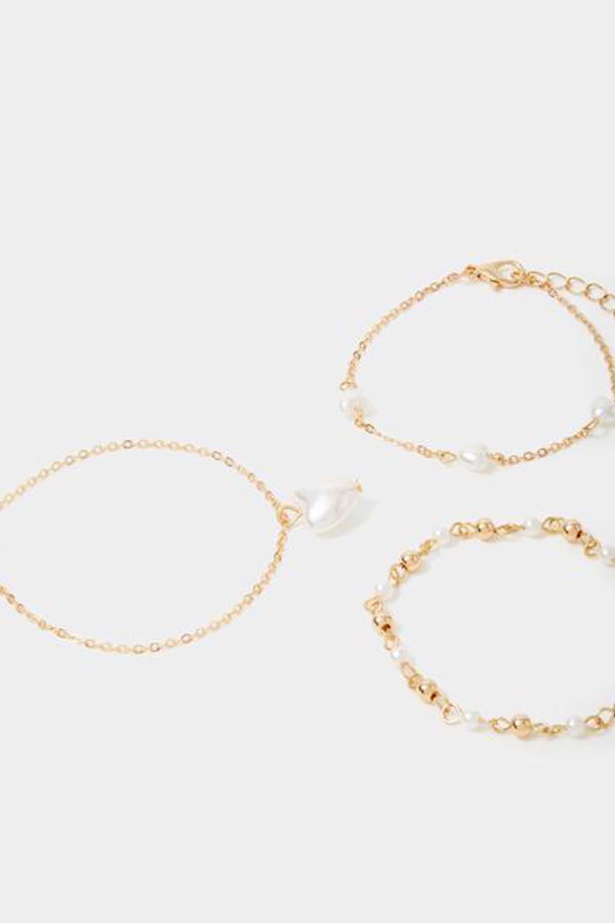3-Pack Pearl Heart Bracelets