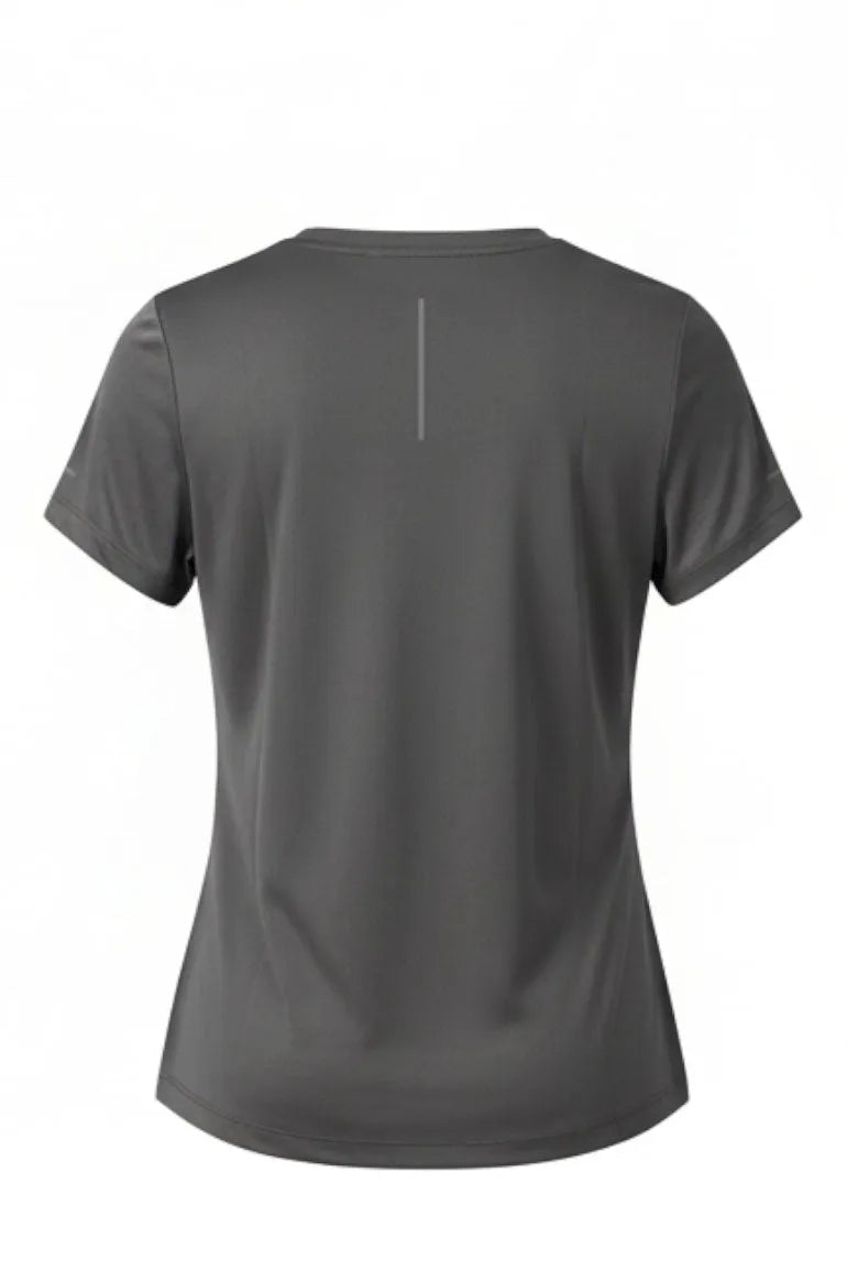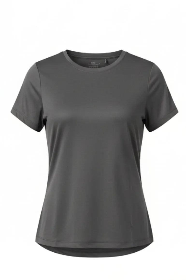 Designed for movement and comfort, this performance T-shirt features a lightweight, breathable fabric with a smooth, flattering fit. The versatile charcoal grey shade makes it ideal for workouts, athleisure styling, or everyday active wear.