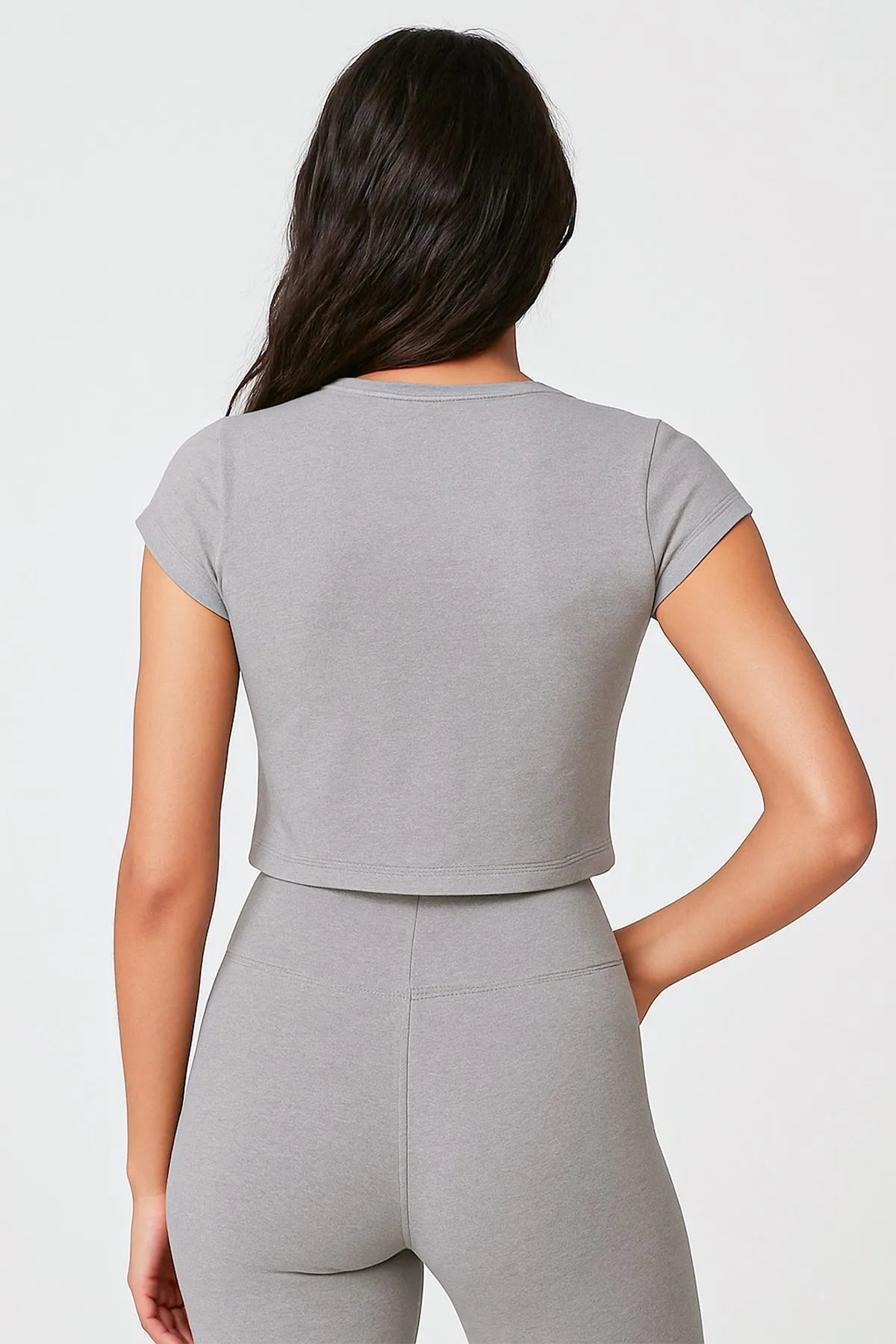 The Essential Top in Anthracite delivers elevated minimalism in a versatile silhouette. Cut from a soft, structured cotton-blend jersey, it features clean lines, a relaxed drape, and a deep charcoal hue that pairs seamlessly with everything. Designed to move with you, it’s the top you’ll keep in rotation all season.