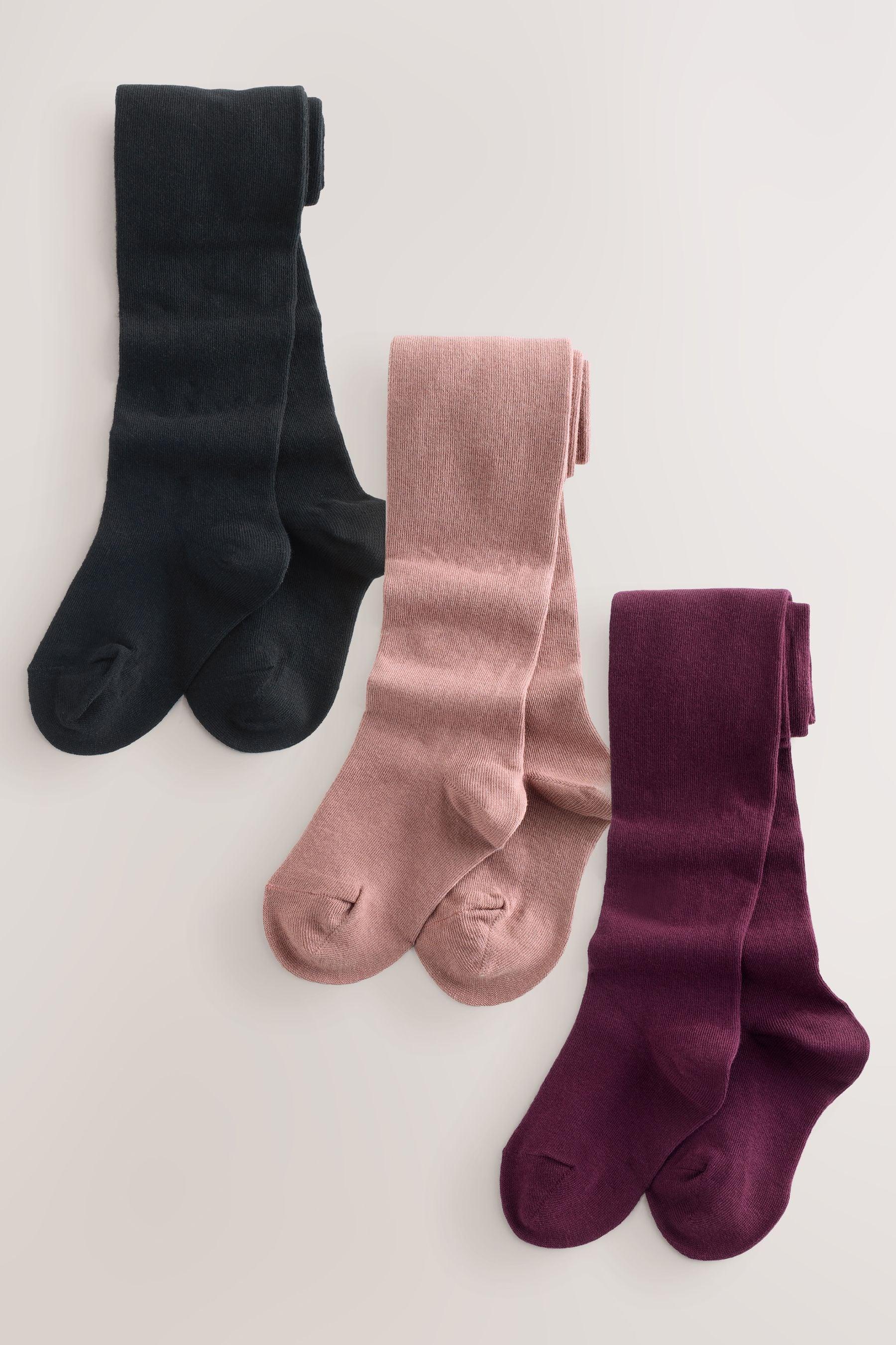 Plum Red Pink and Black 3 Pack Cotton Rich Tights