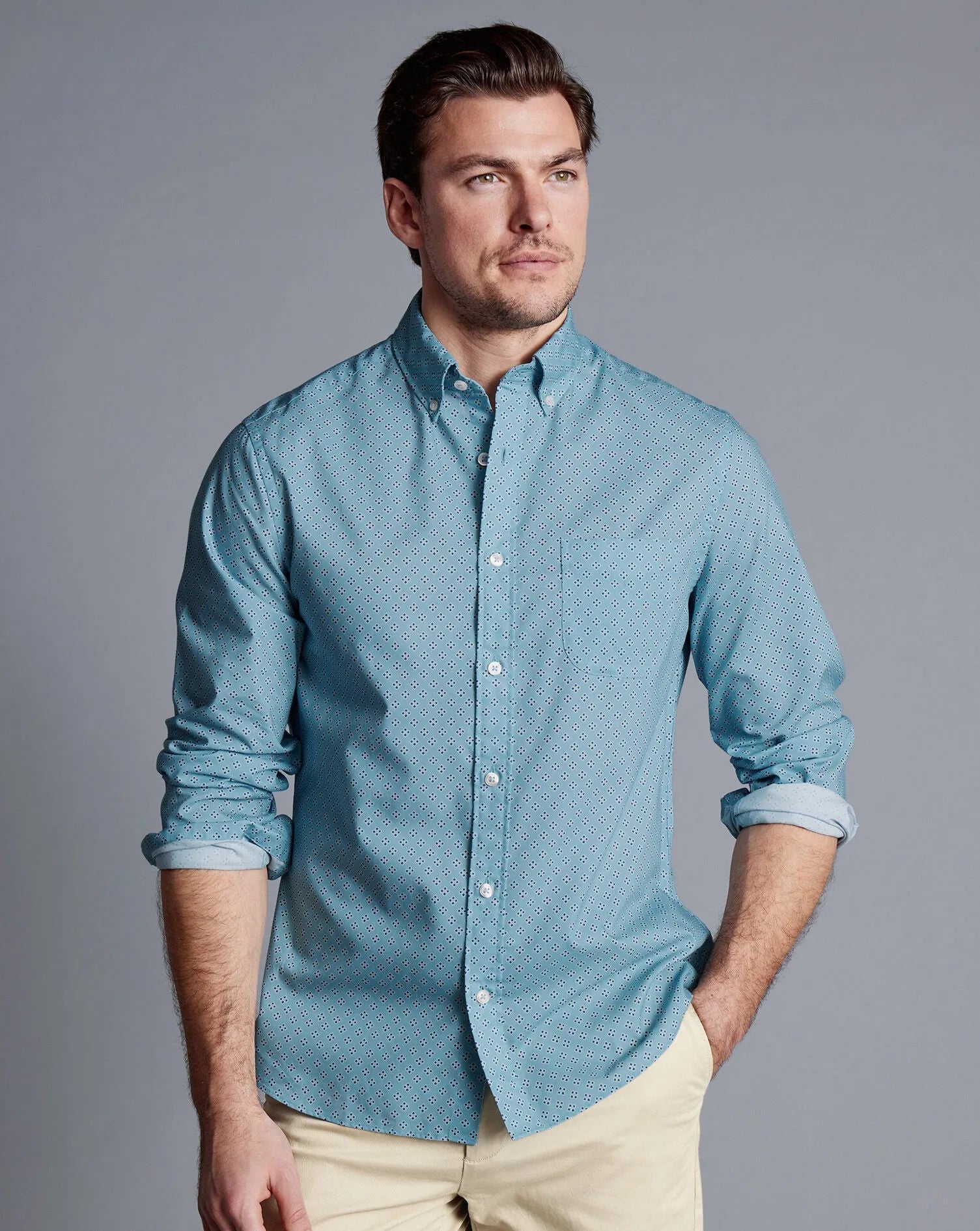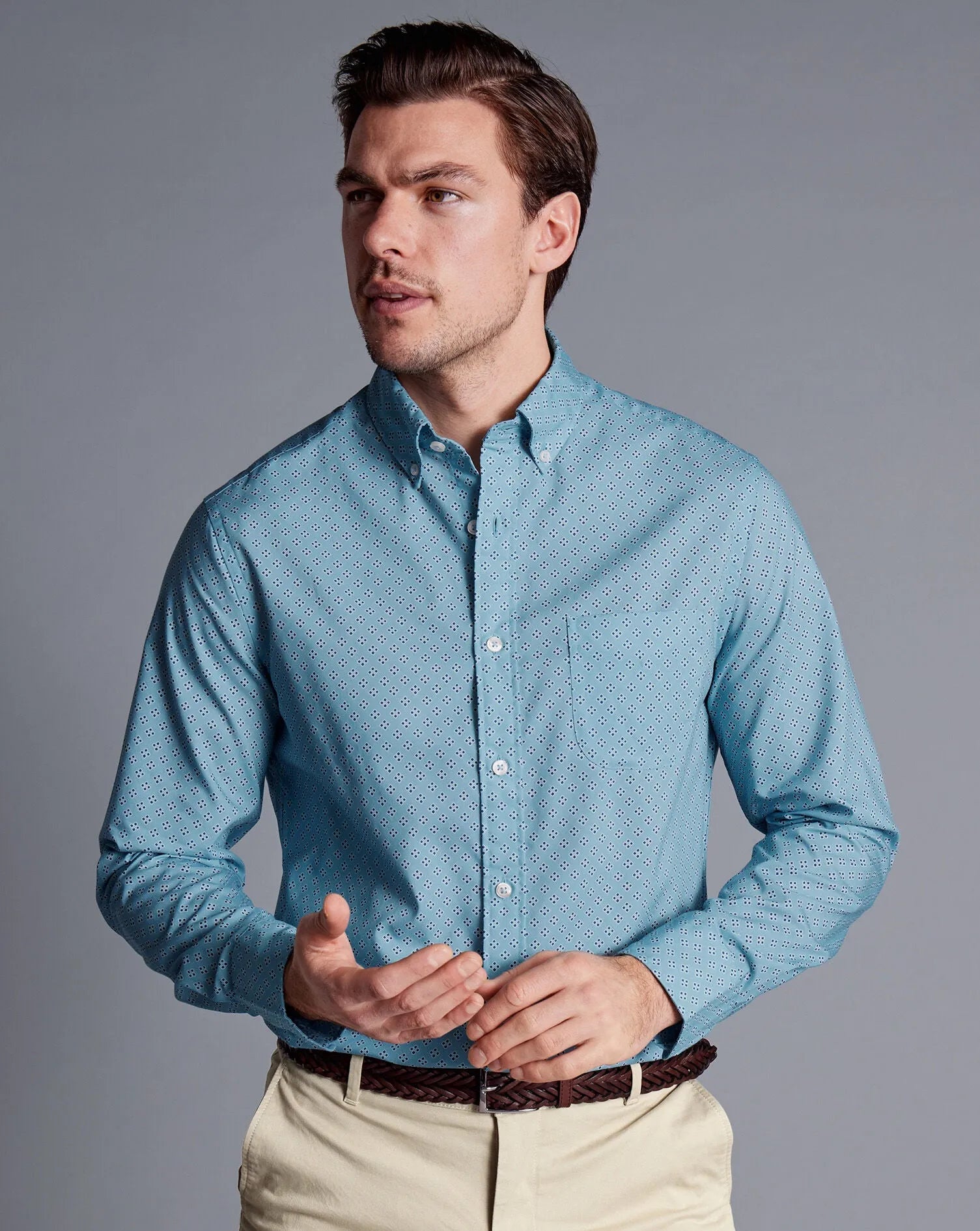 Aqua Green Diamond Print Sf Non-Iron Stretch Poplin Shirt