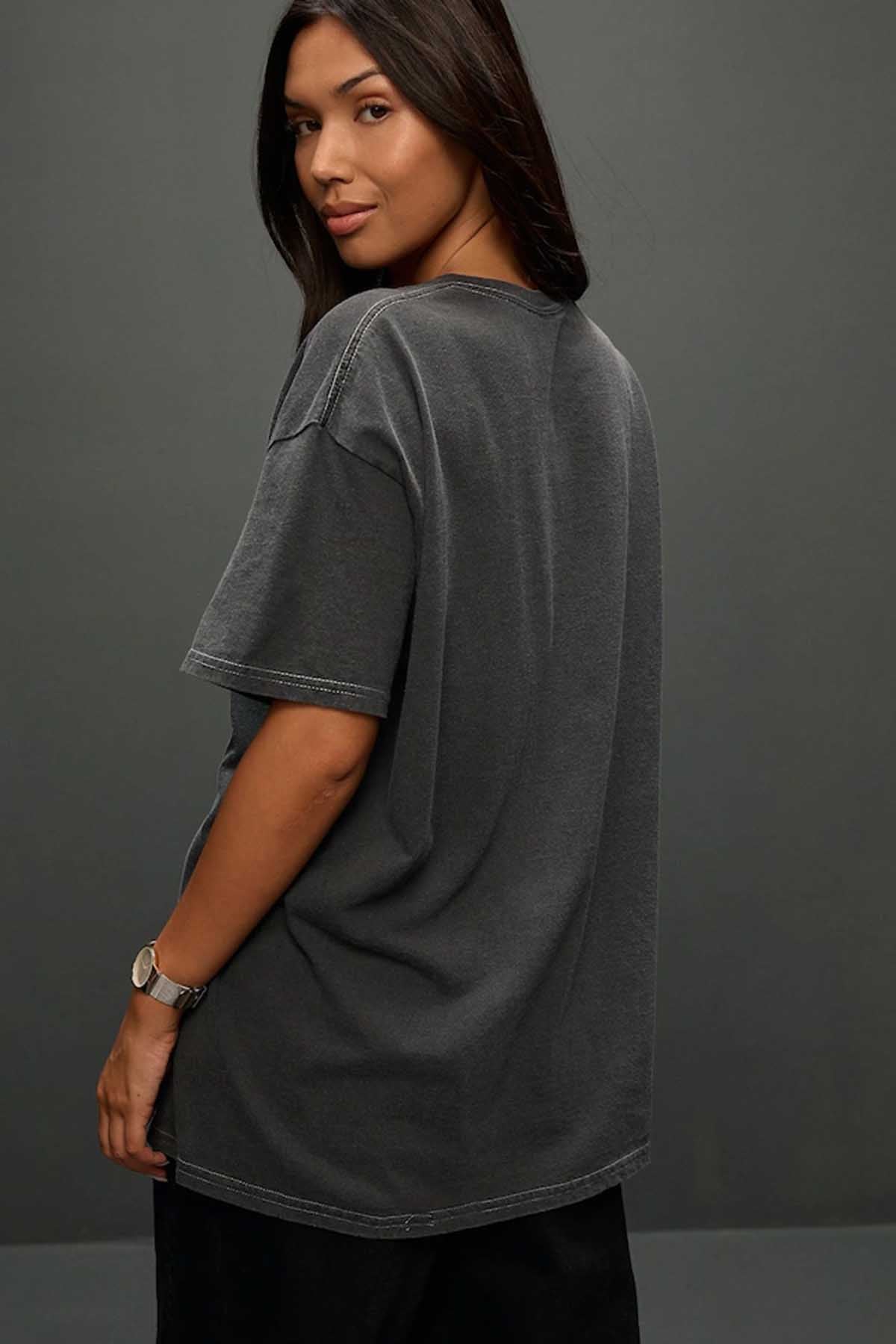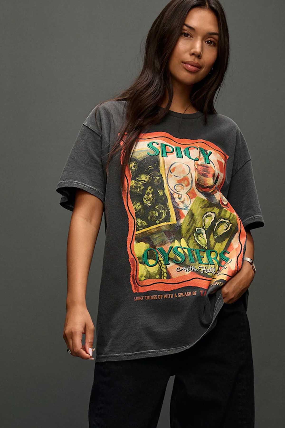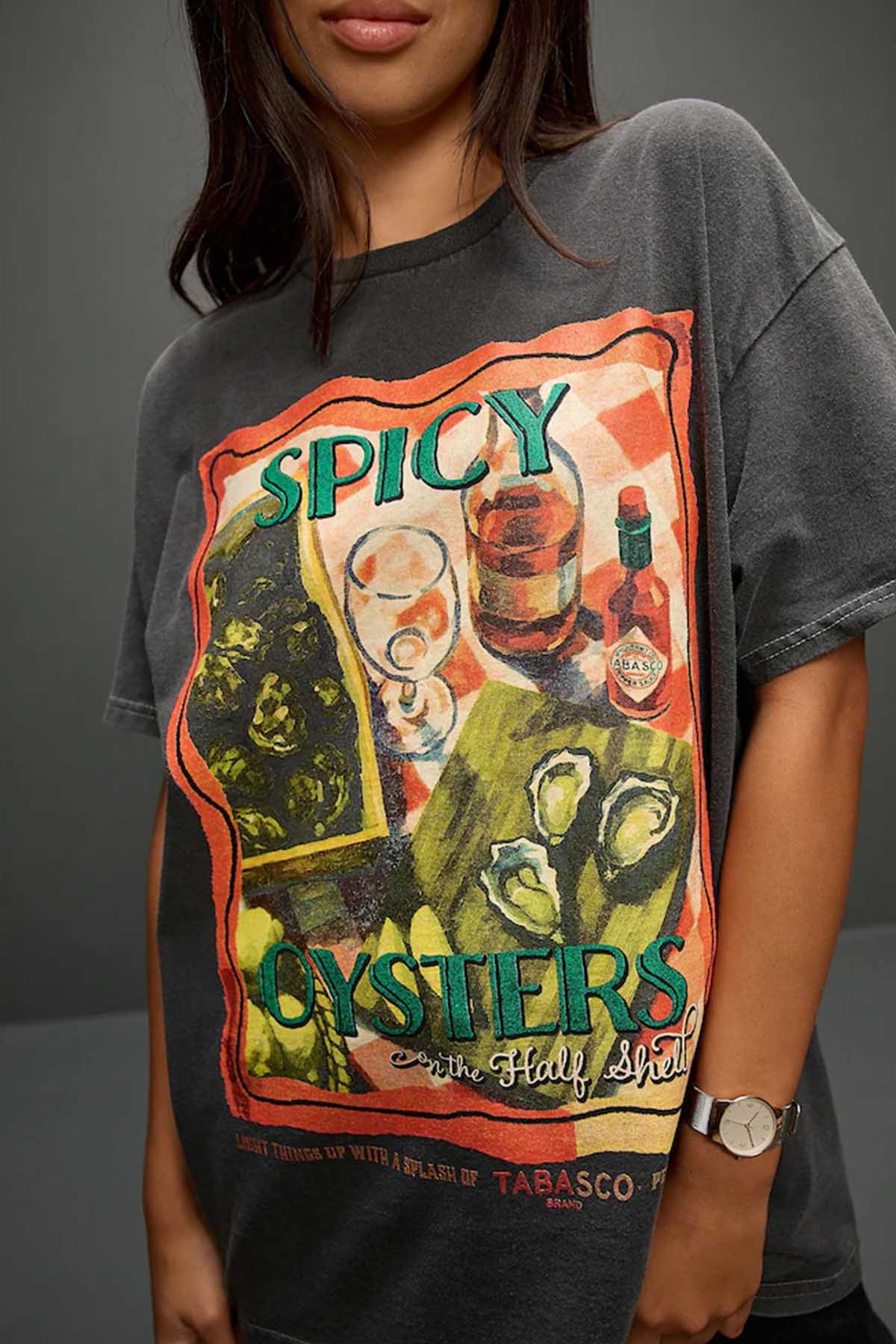Charcoal Grey Oyster Tabasco License Graphic Printed Crew Neck T-Shirt