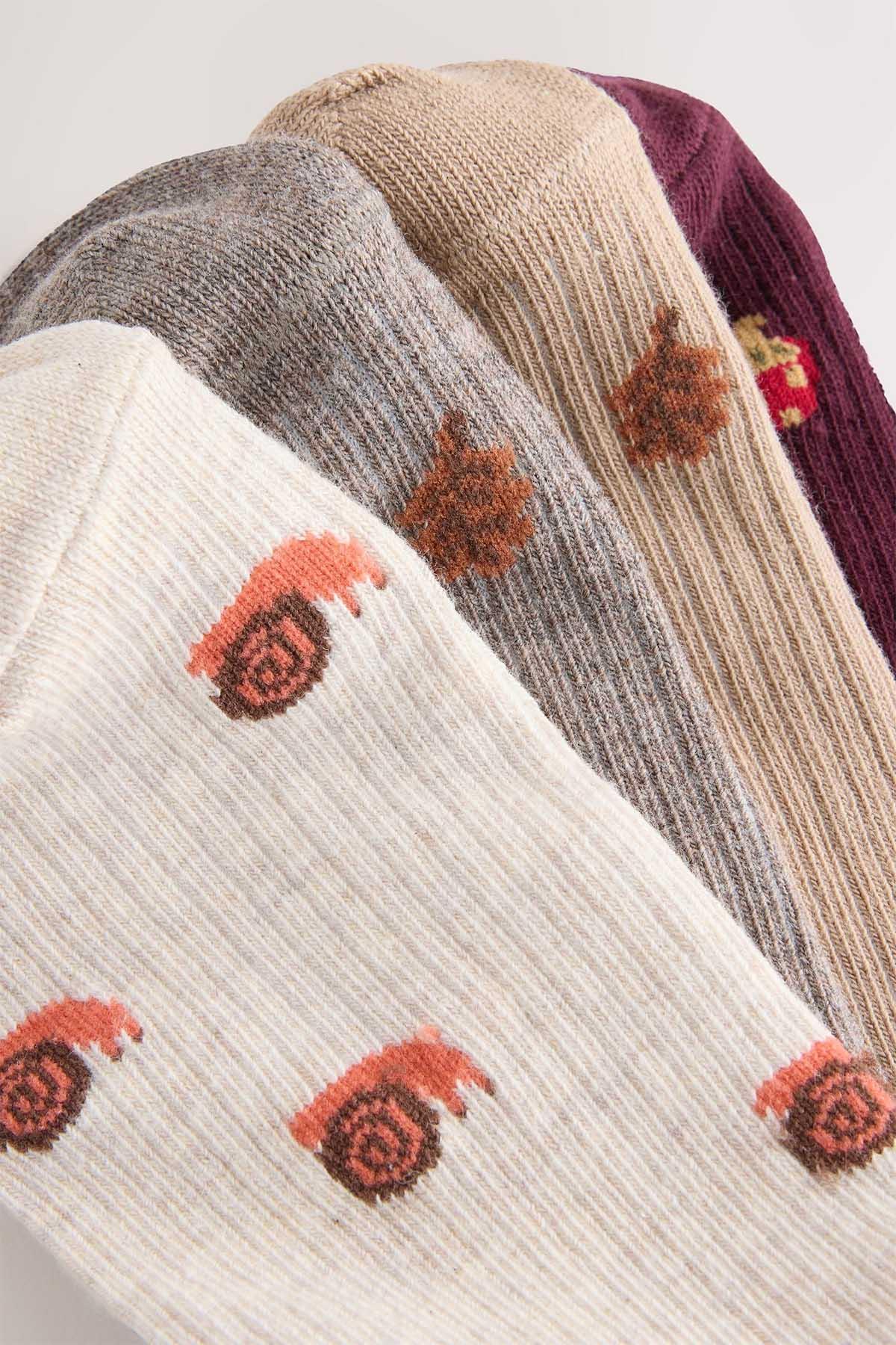 Autumn Animals Ditsy Trainers Socks 4 Pack