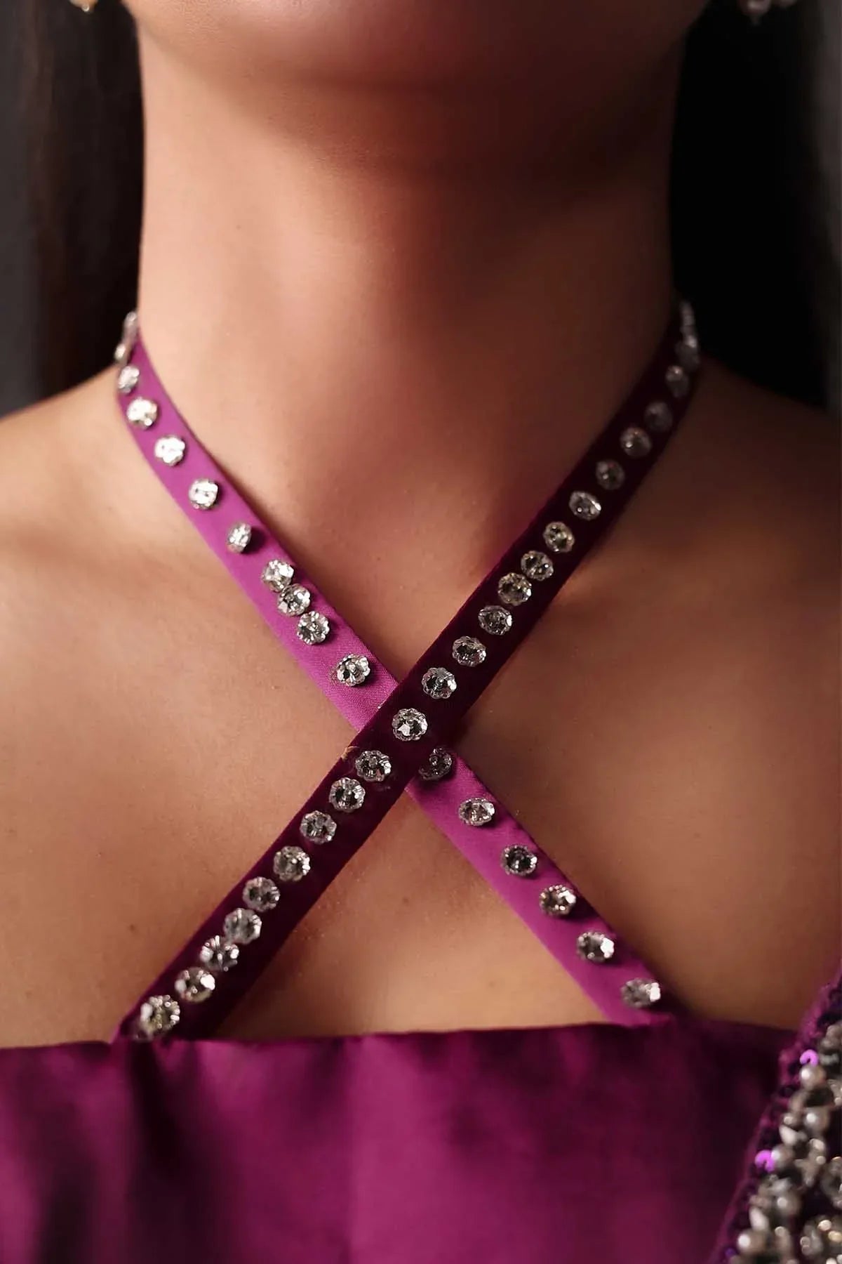 Ava Is An Elegant Purple Formal Ensemble Featuring A Heavily Embellished Gown Paired With A Flowing Silk Dress. The Stunning Gown Showcases Exquisite Sequins,Crystal Beadwork, Swarovski Accents, And Intricate Handmade Craftsmanship. With Its Detailed Artistry, Ava Delivers A Graceful And Refined Silhouette, Making It The Perfect Choice For Festive Evenings And High-End Formal Events.