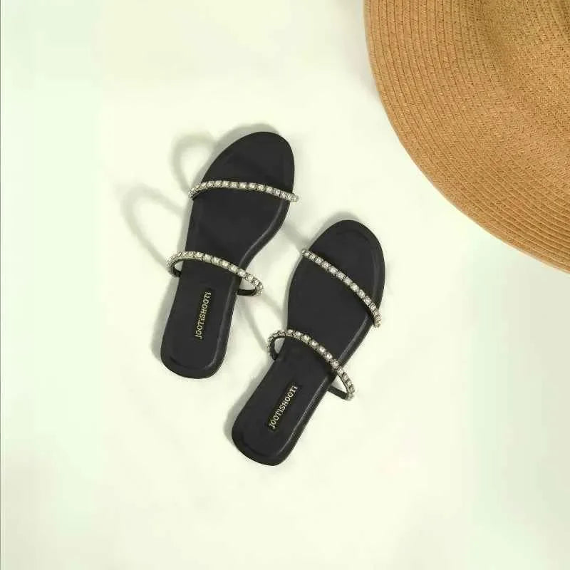 Two fine straps set with baguette-cut crystals for a clean, modern sparkle. Slim, secure, and made to catch the light—your go-to for dinners, dholkis, and everything in between.