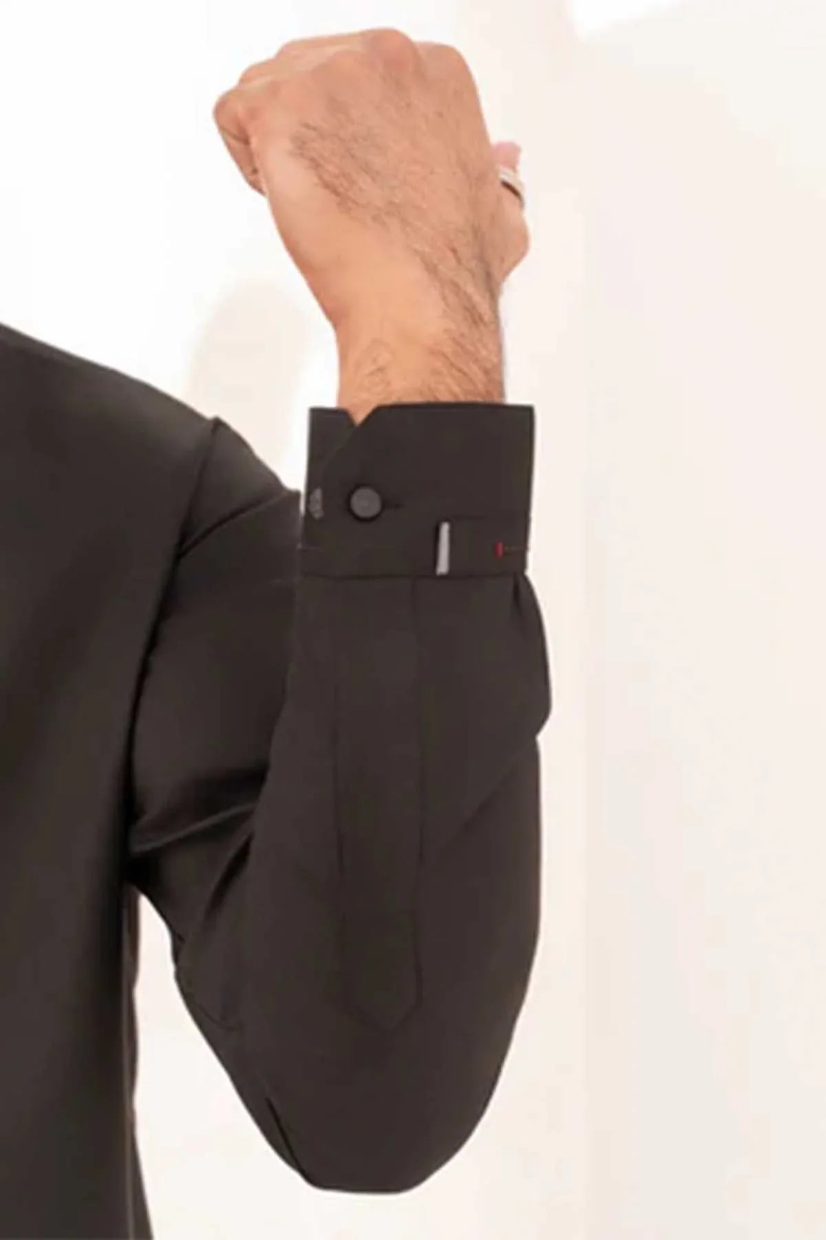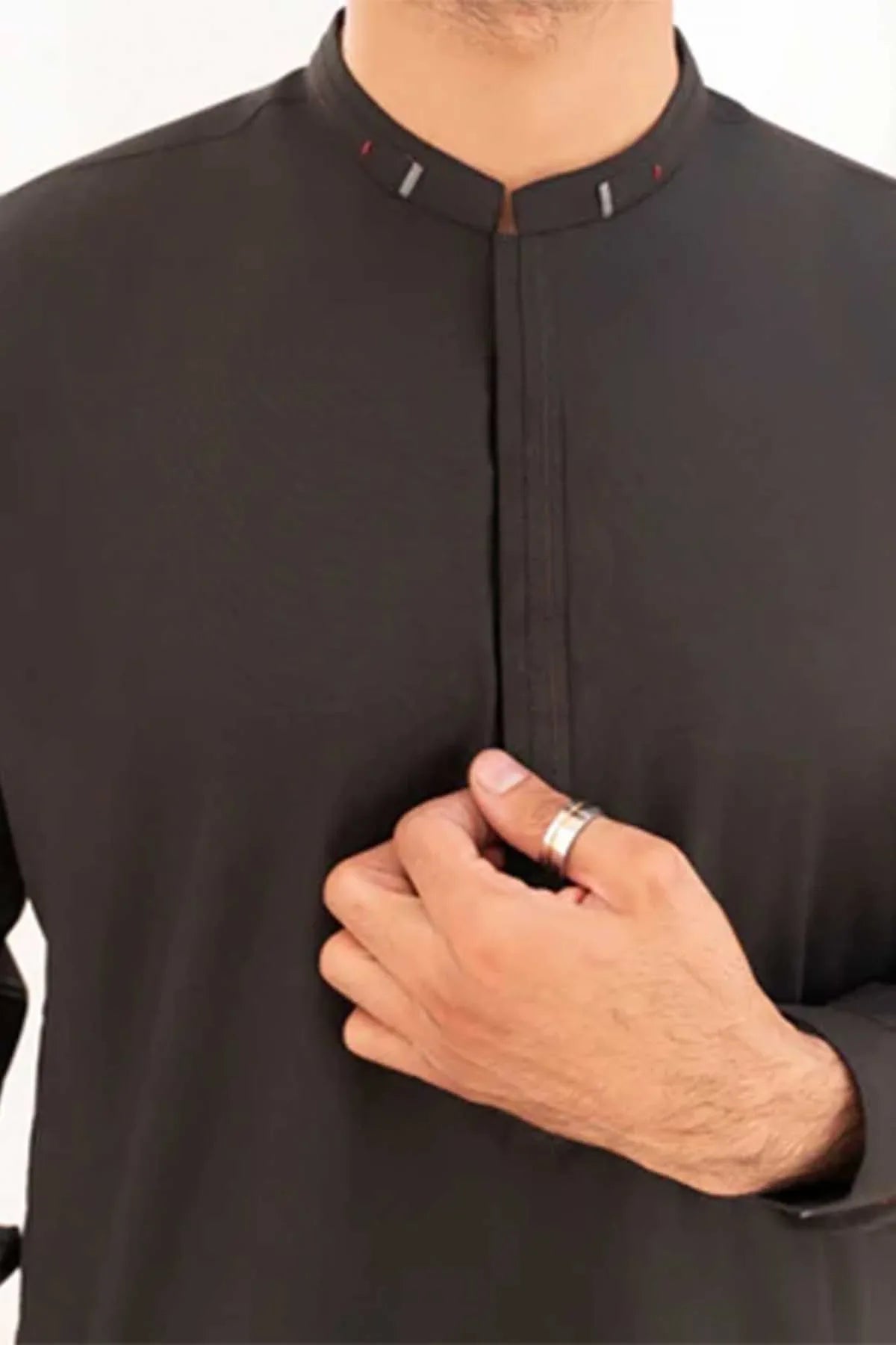 Men'S Wash & Wear 2 Piece Shalwar Kameez By Buraq Is Perfect For Daily Wear. The Black Ensemble Features A Regular Fit Top With A Stylish Mandarin Collar And Chain Stitch Detailing. The Straight-Leg Bottoms Offer Comfort And Versatility For All Seasons.