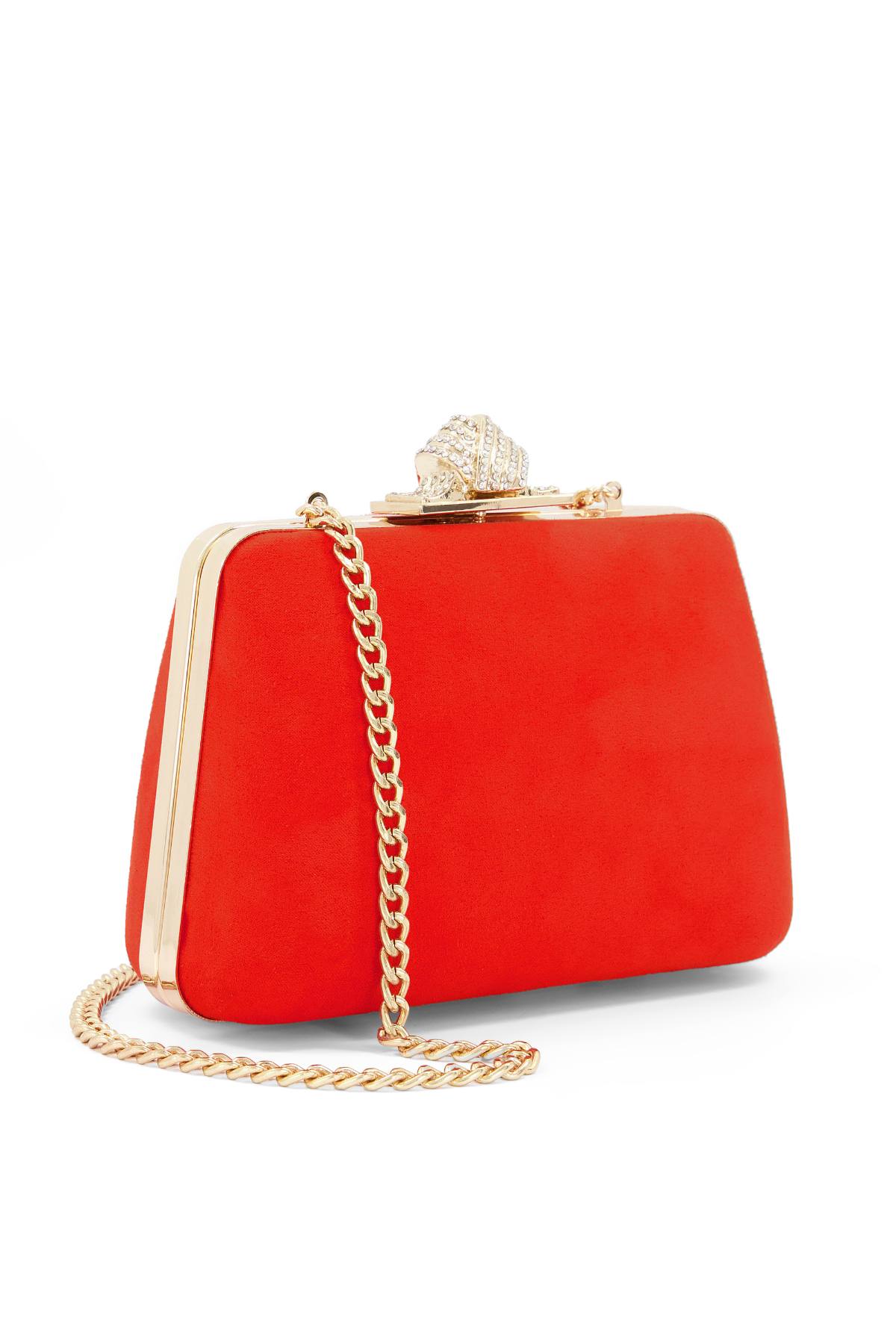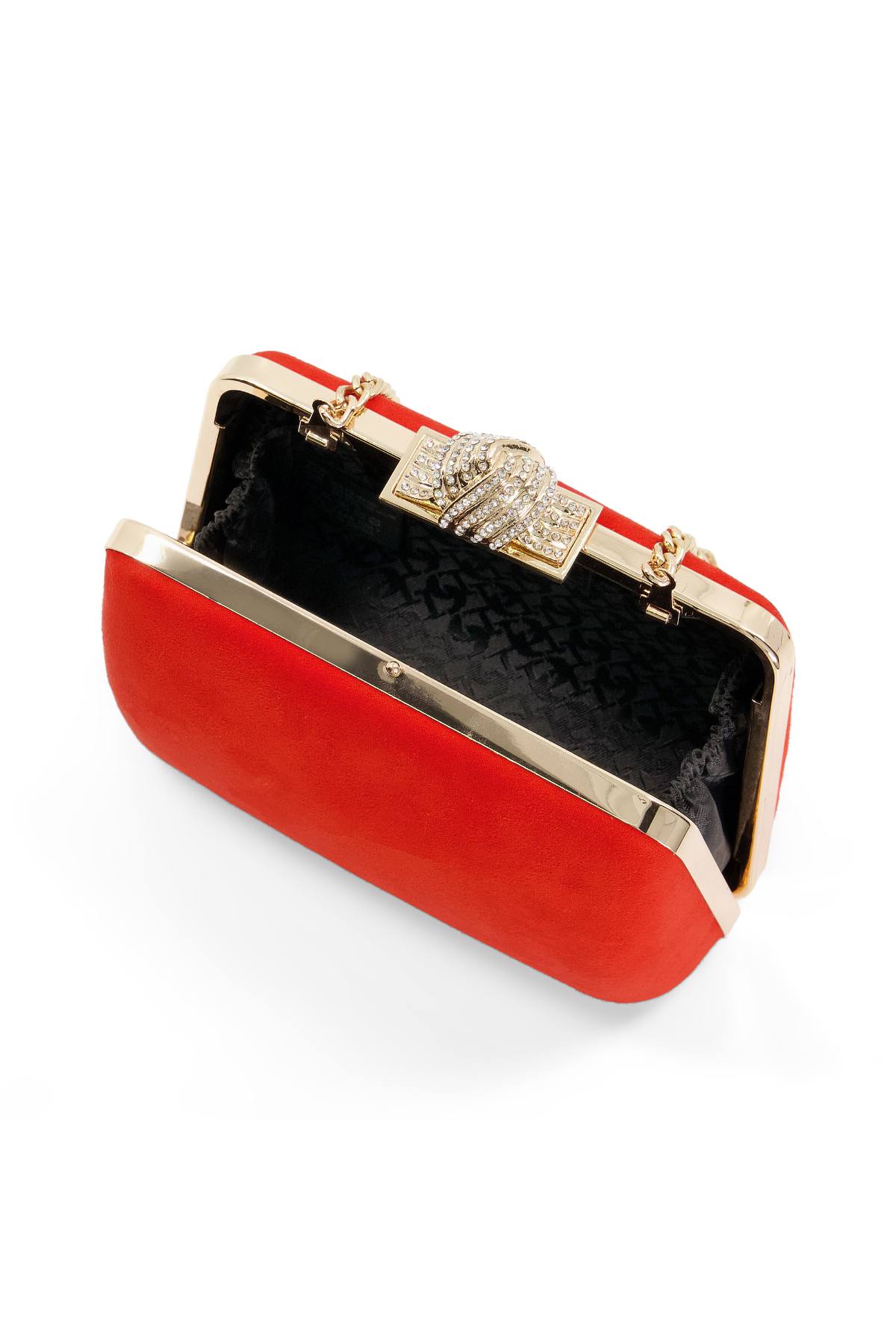 This hard-case box clutch features a classic clip-frame profile with a diamante-encrusted clasp. Simply throw the chain over your shoulder when the dancefloor beckons. Co-ordinate your look with our matching Moral heels.