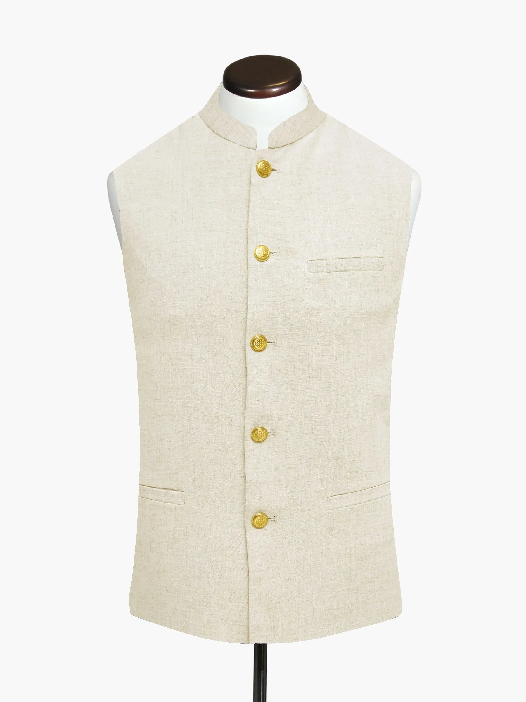Beige Linen Waistcoat With Golden Buttons - Sartoria