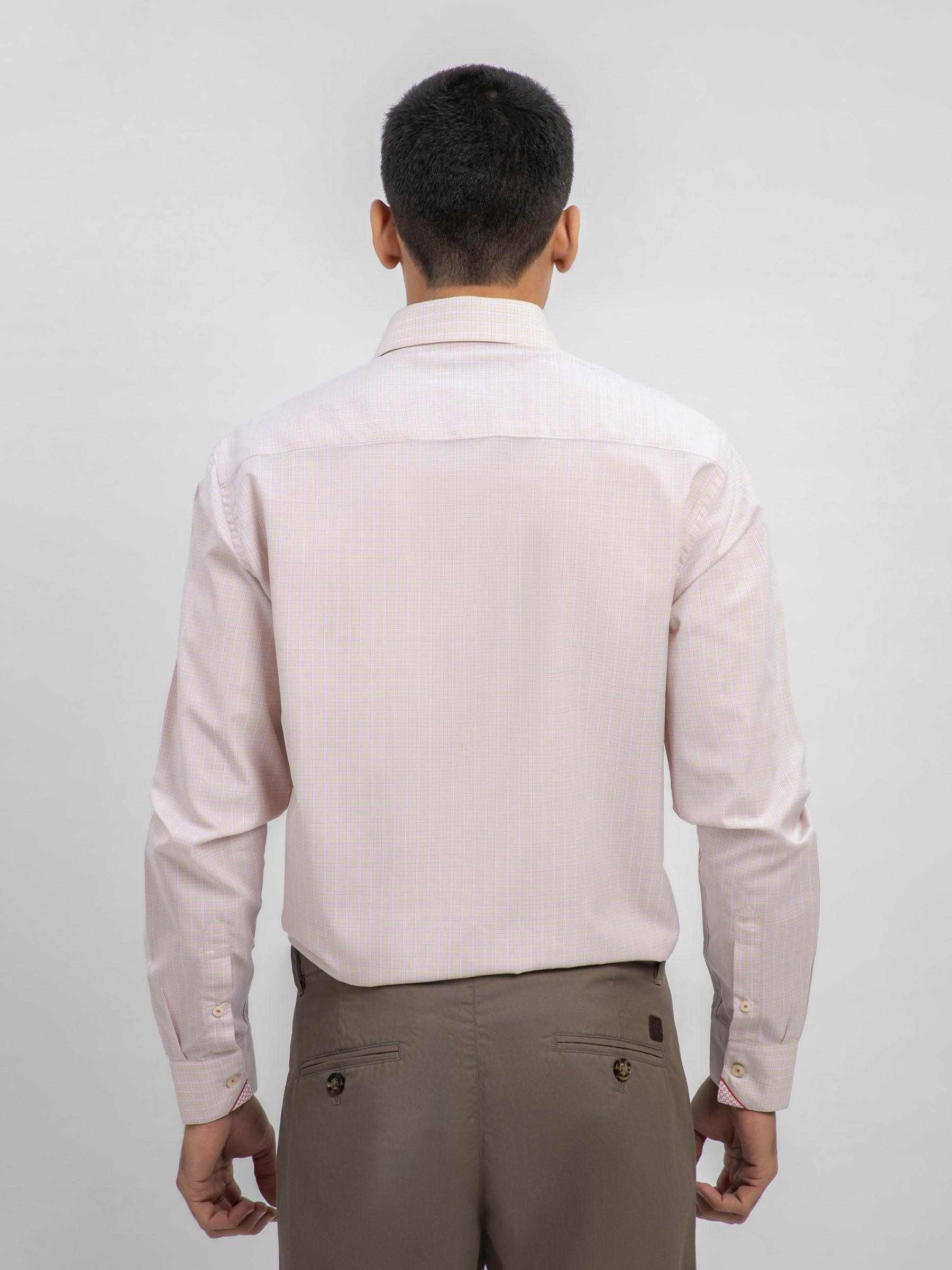 Elevate your business attire with our impeccably crafted beige & pink checkered formal shirt. The striking pink checkered pattern exudes confidence and sophistication. Superior fabric, tailored for a perfect fit, this shirt showcases your attention to detail and professionalism. Finished with shallow collar with inner collar detailing