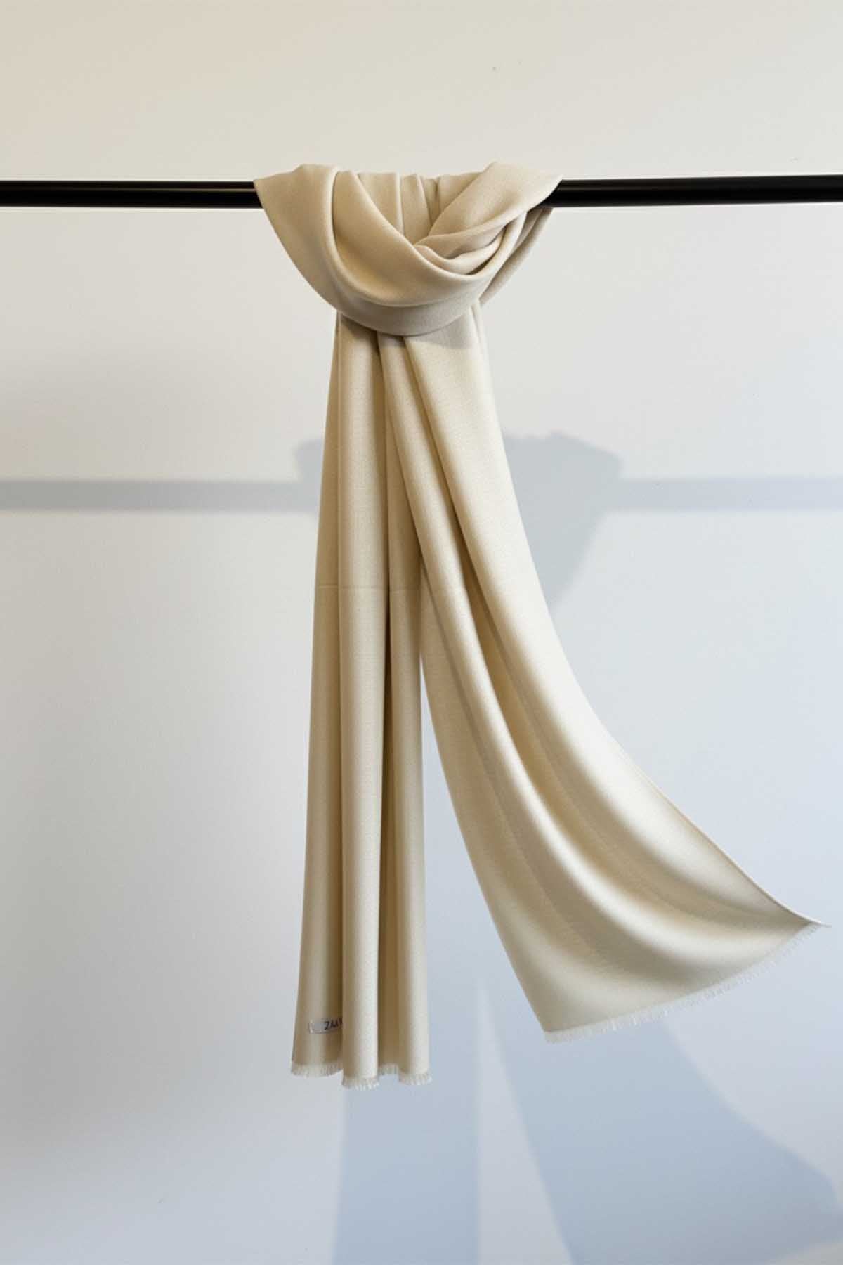 Beige Turkish Lawn scarf. Soft lightweight and elegantly draped.