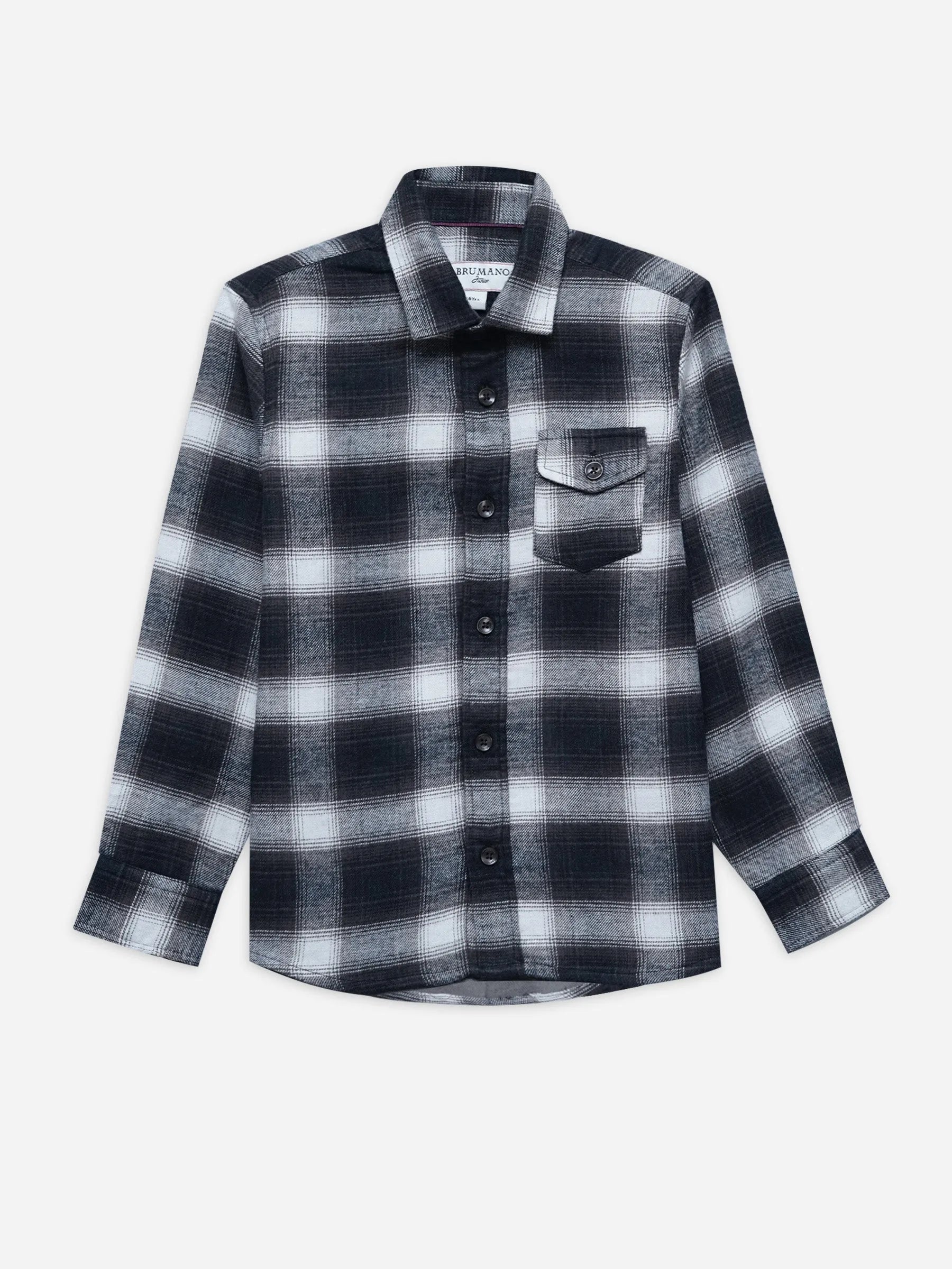 Keep your little one stylish and cozy with black checkered flannel casual shirt from Junior collection. Made from soft, comfortable flannel, it features a casual checkered pattern. Perfect for casual outings and everyday wear.
