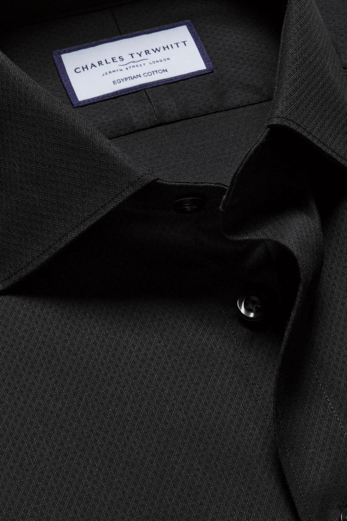 Black Egyptian Cotton Ascot Weave Slim Fit Shirt