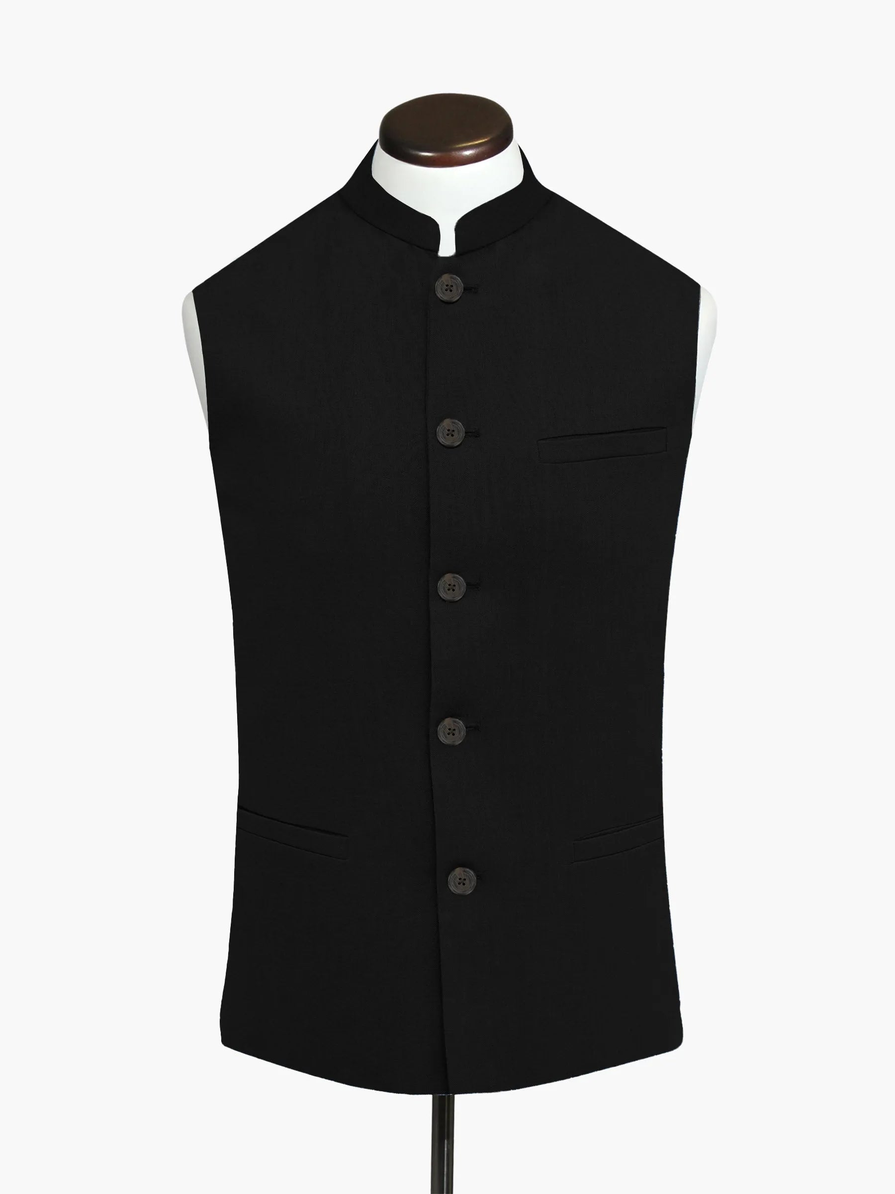 A timeless formal piece in beautifully finished fabric, tailored fit, and classic design. Perfect for pairing it with shalwar kameez, this black formal waistcoat is a must-have this season