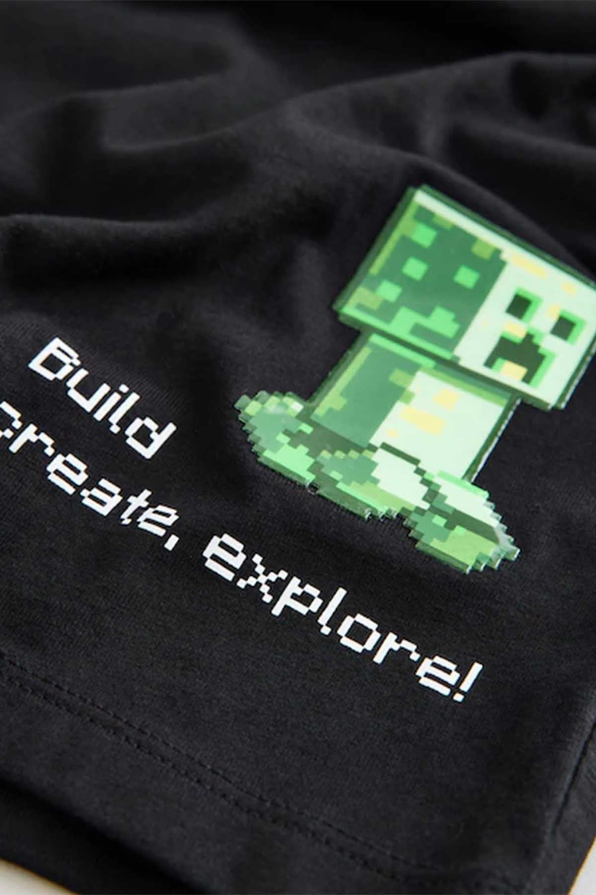 Black Gel Print Single Minecraft T-Shirt (3-16yrs)