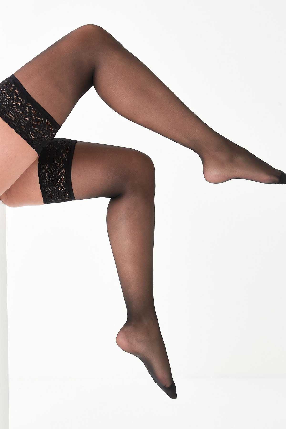 Black Ladder Resist Lace Top 15 Denier Hold-Ups