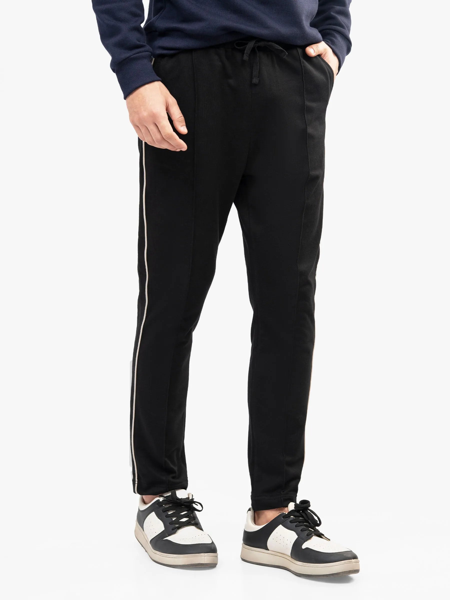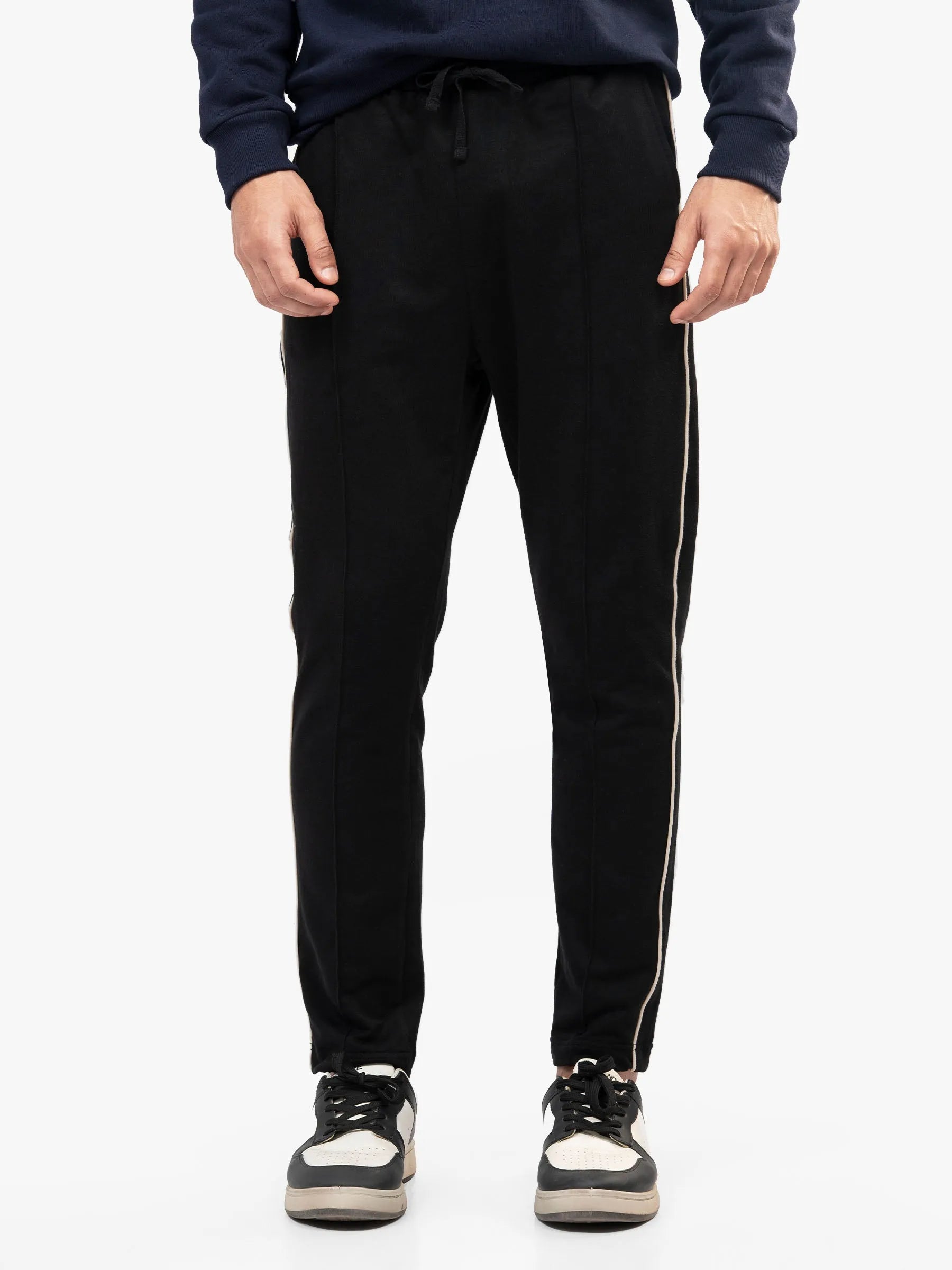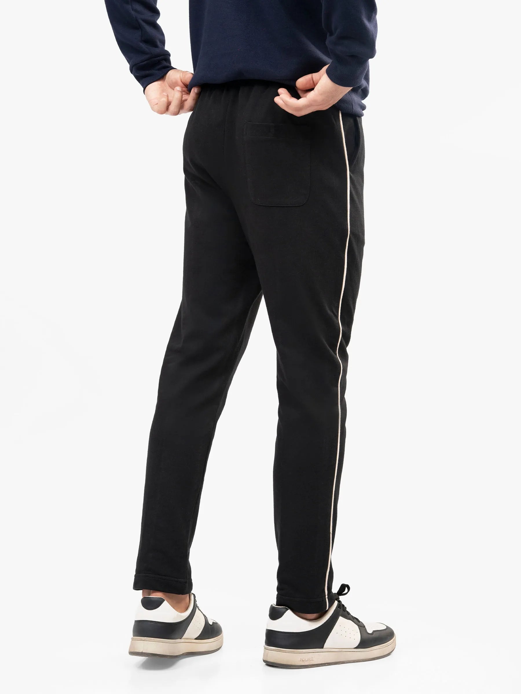 Kick back in effortless comfort with our black, sporty, regular-fit knitted pajama. Made from soft, breathable 100% cotton terry knitted fabric, it features a relaxed regular fit with an easy waistband & front dart for a clean look. Minimal, and built for lounging, travel, or everyday downtime, this is a must-have item