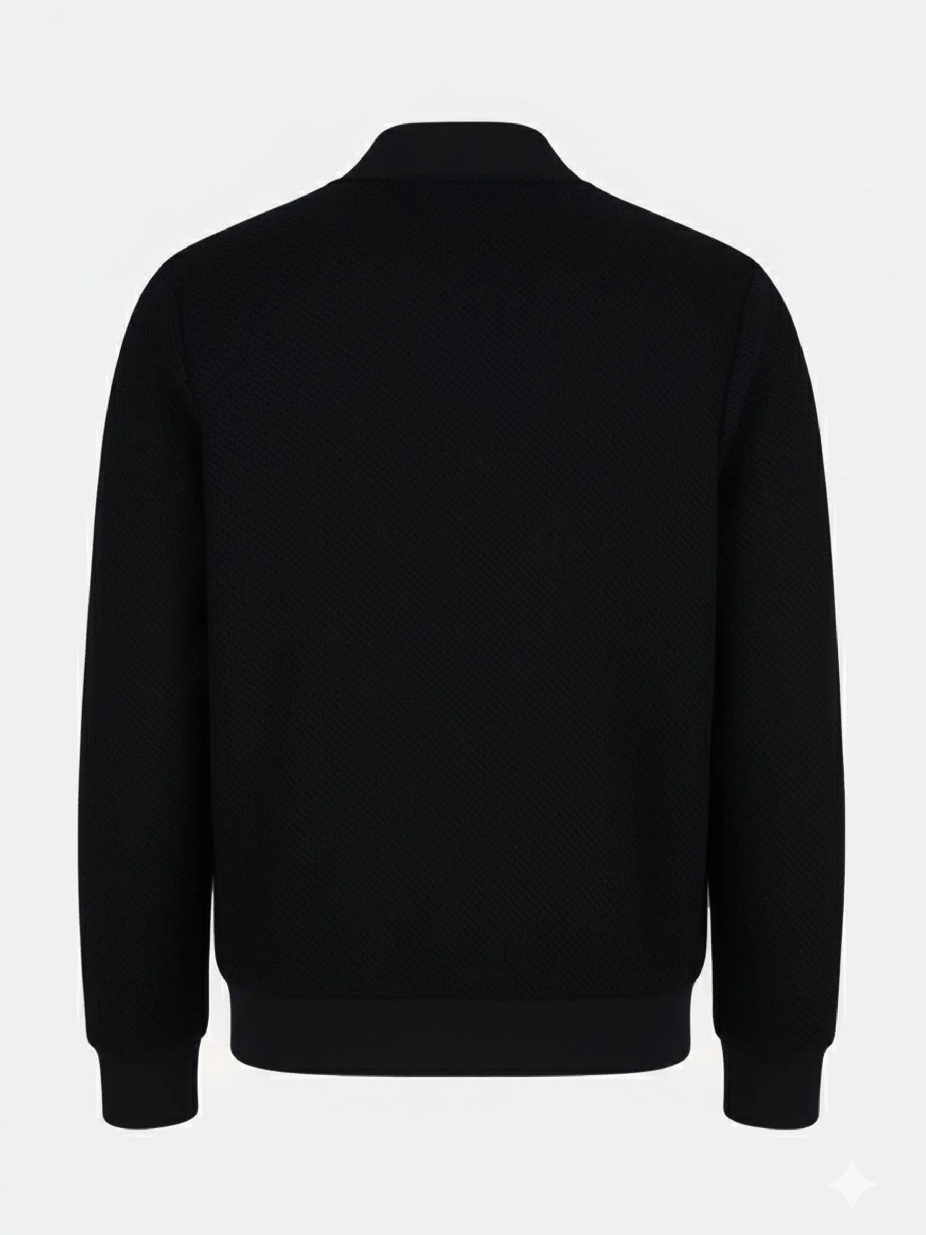 Sleek blend of warmth and style, this bomber is tailored in premium wool structured fabric. Featuring a full-zip closure, ribbed collar & cuff & front metal emblem. It’s a versatile layer perfect for both casual and smart looks.