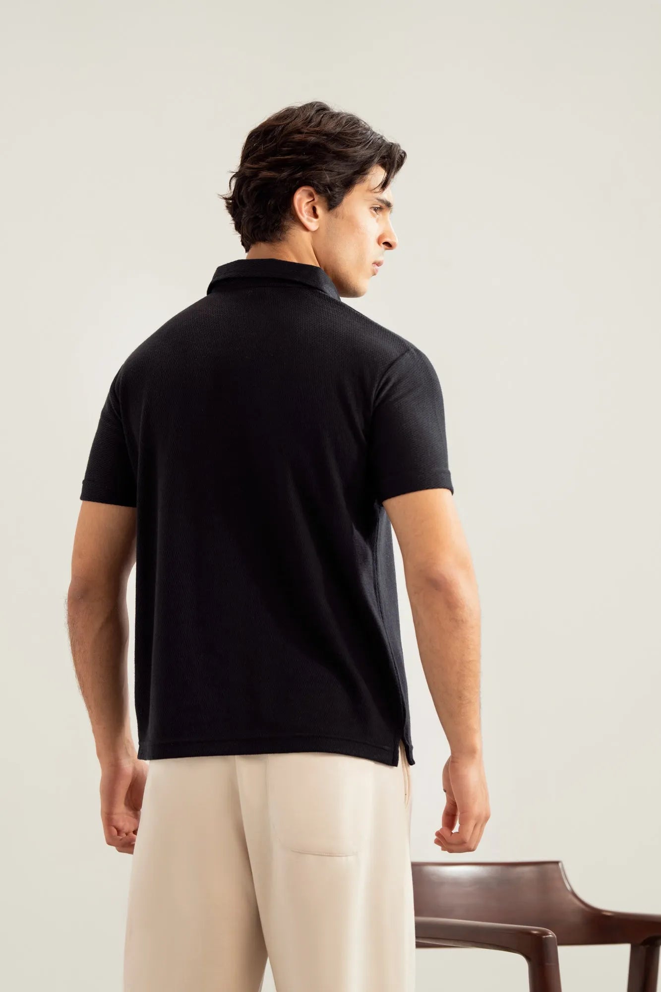 Black Mesh Thermal Knit Polo - Smart Fit - Men