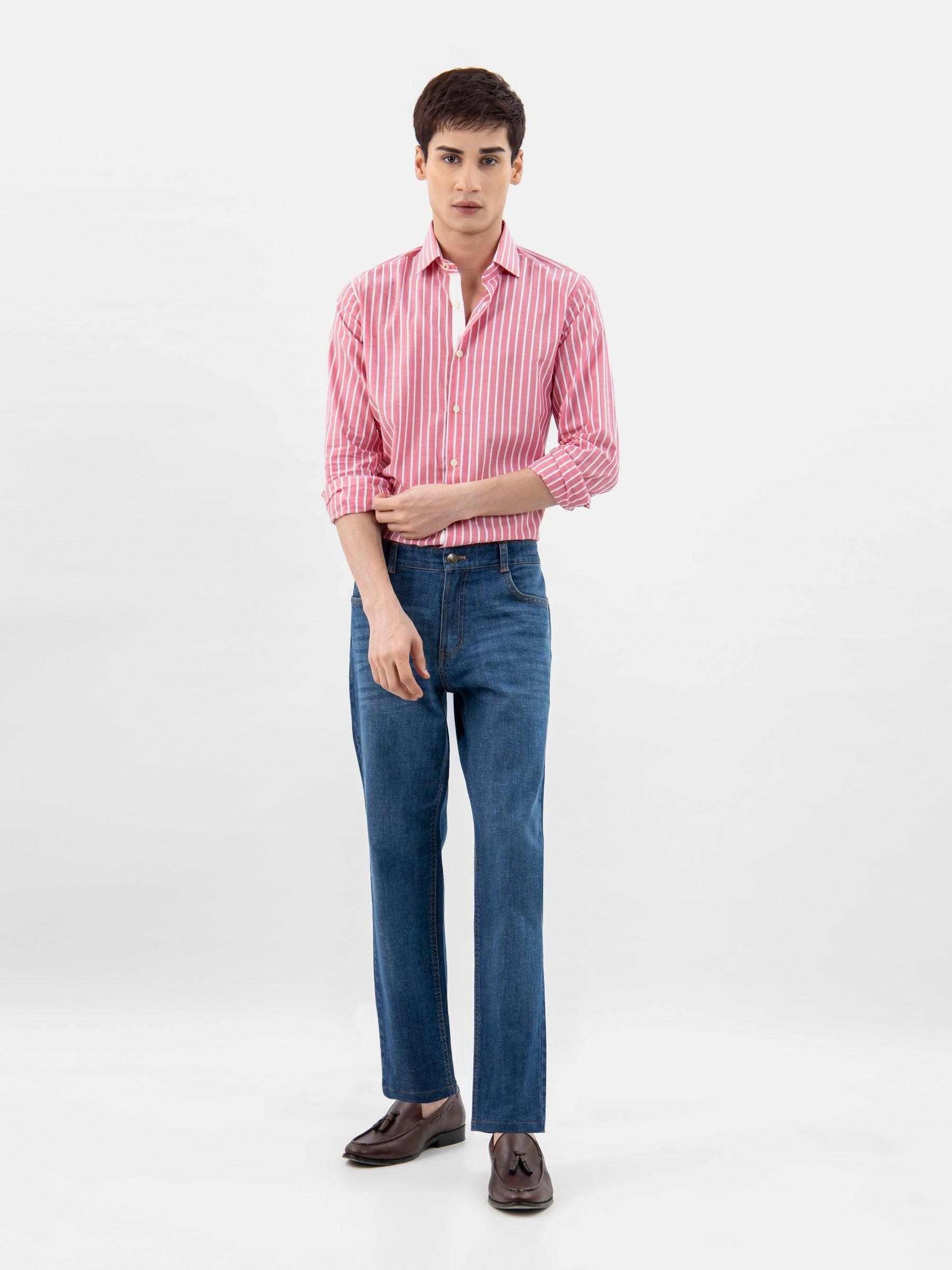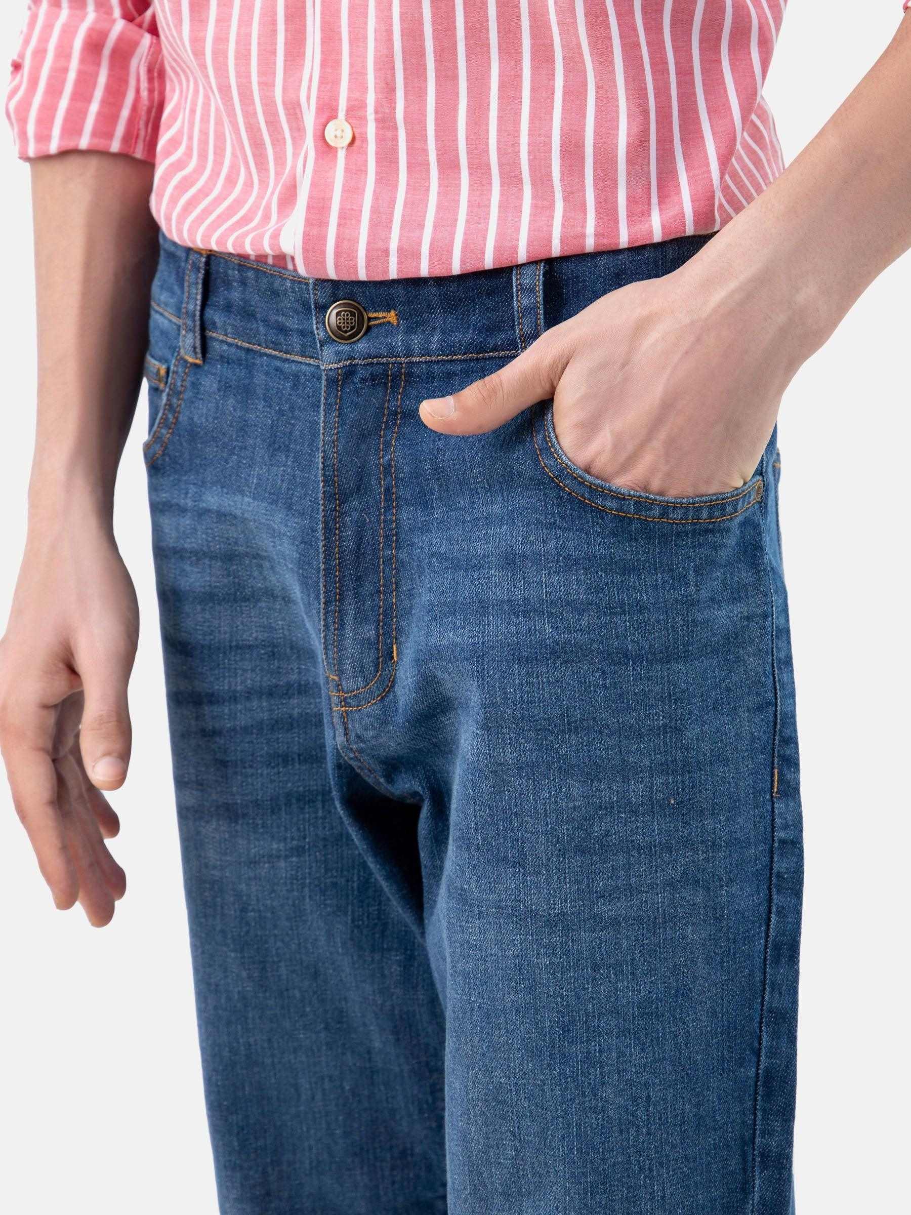 An everyday classic, our blue jeans offer comfort and ease for everyday wear. Made in casual fit cut & dark washed that adds depth to the fabric making them suitable for both relaxed and semi-casual settings.Finished with front whisker look, orange stitch detailing & brown embossed leather patch at the back.