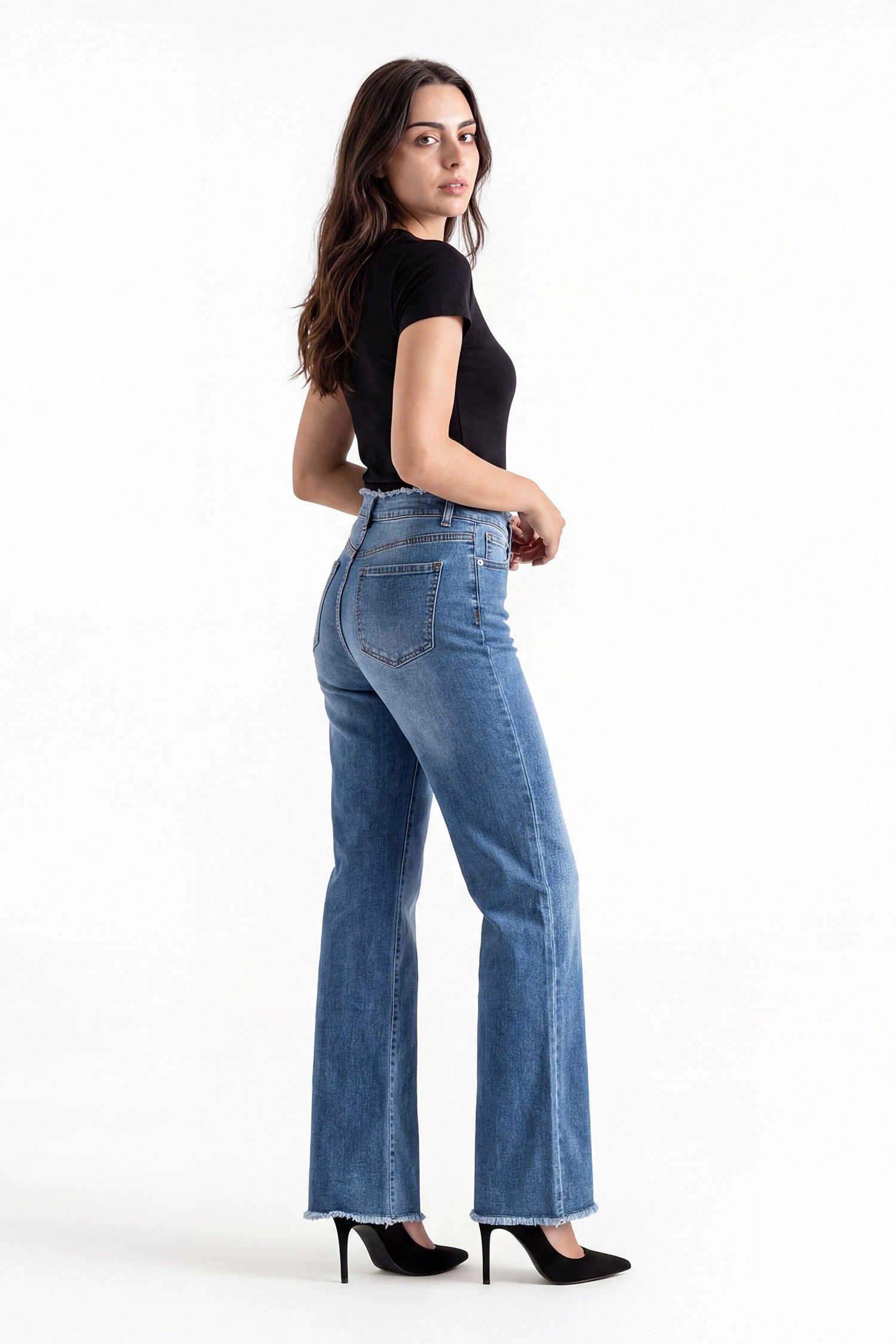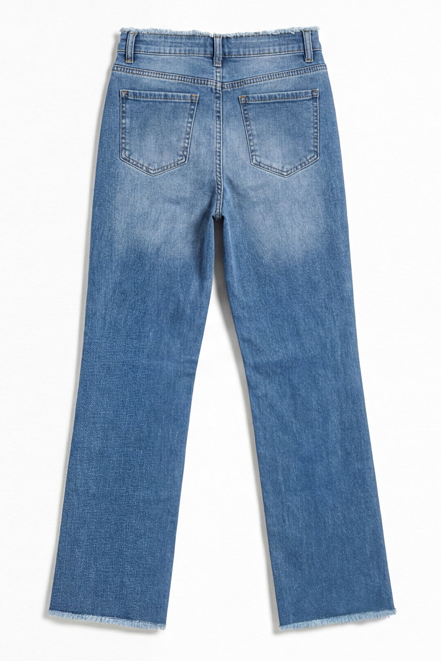 Classic shape, updated feel. These boot cut denim jeans come in a blue mid-wash with a flattering fit through the thigh and a subtle flare at the hem. Easy to style, easy to wear—built for everyday looks with effortless attitude.