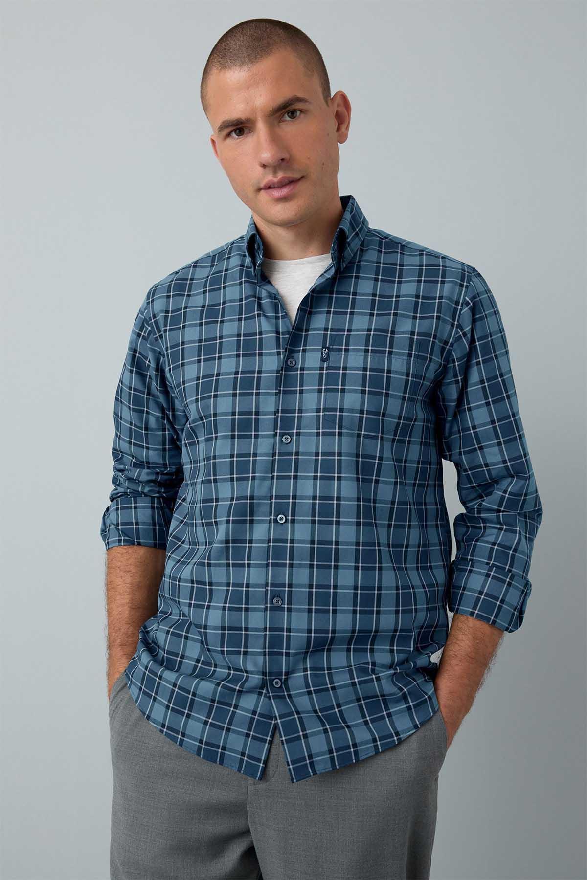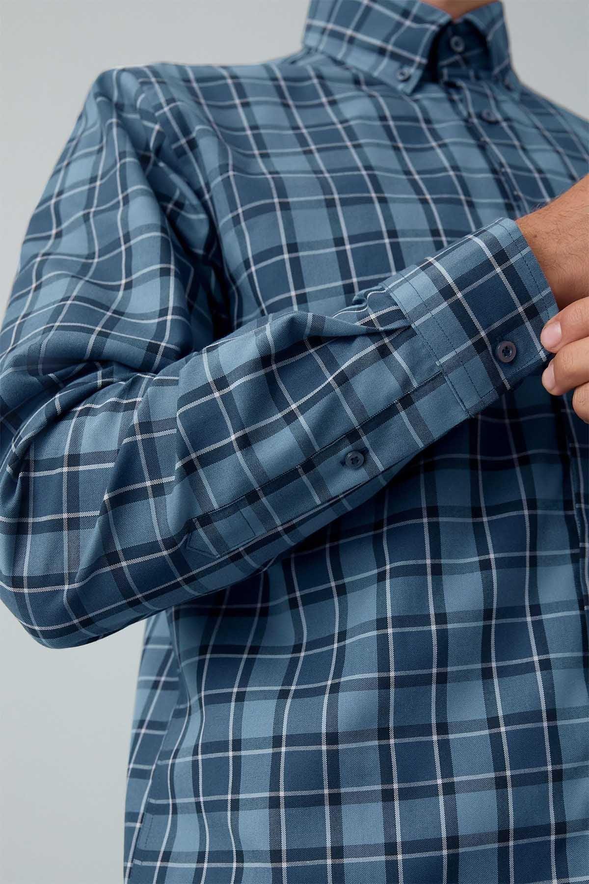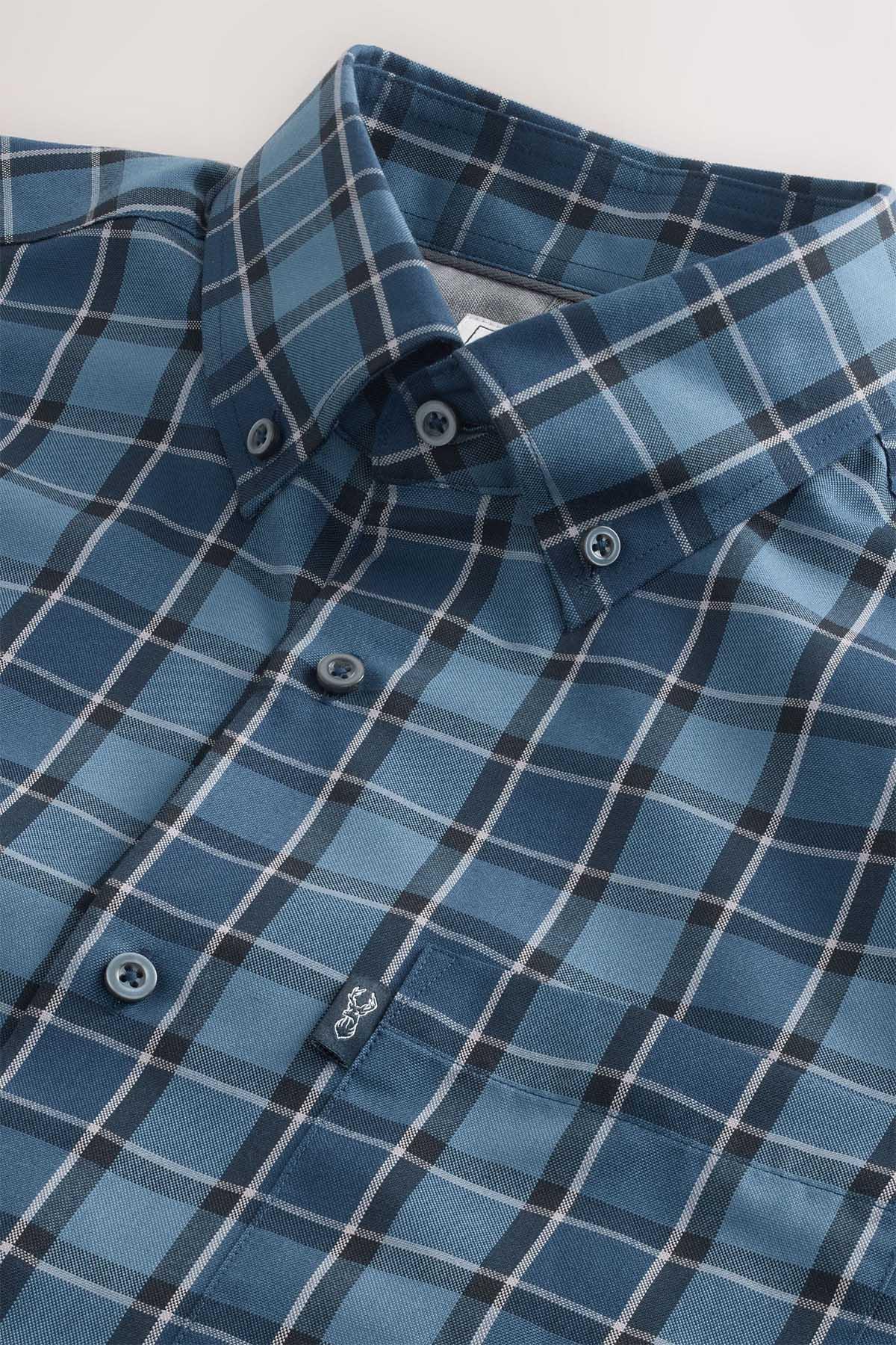 Blue Tonal Check Regular Fit Easy Iron Button Down Oxford Shirt