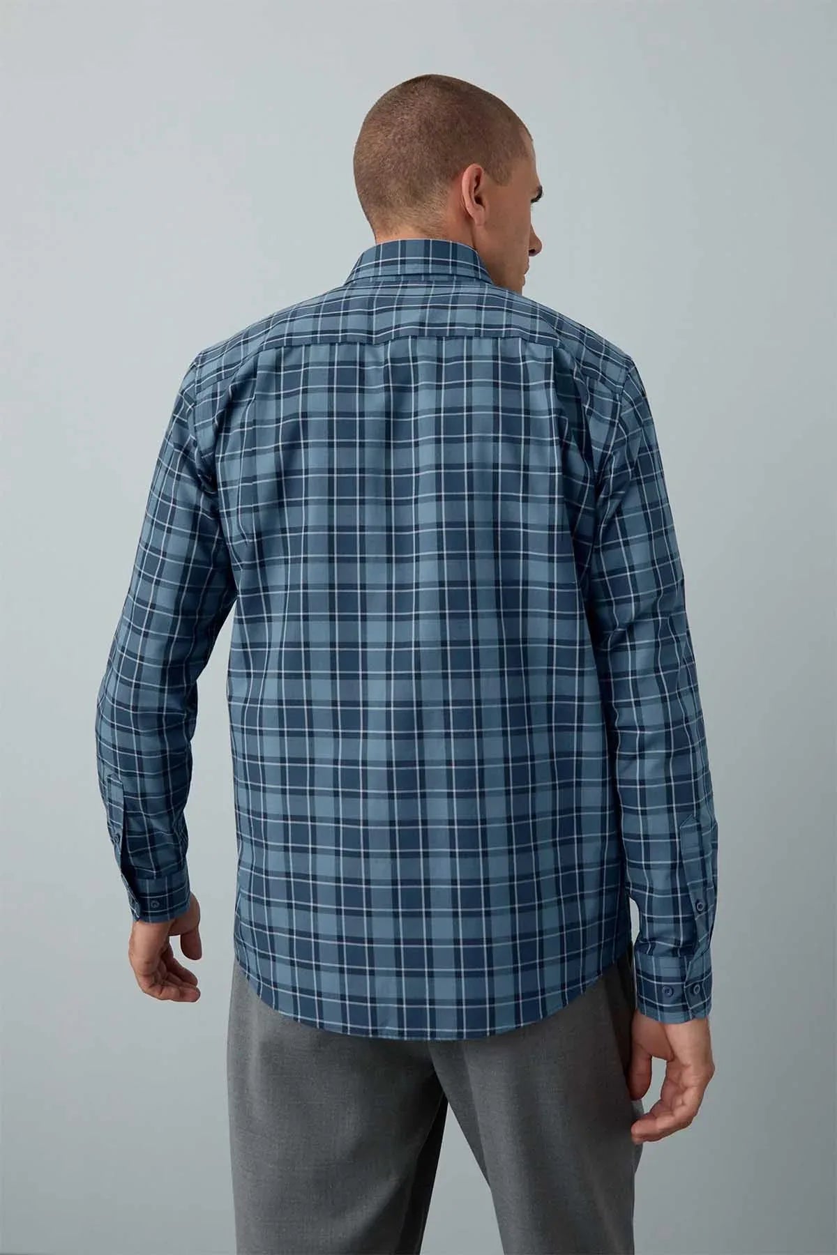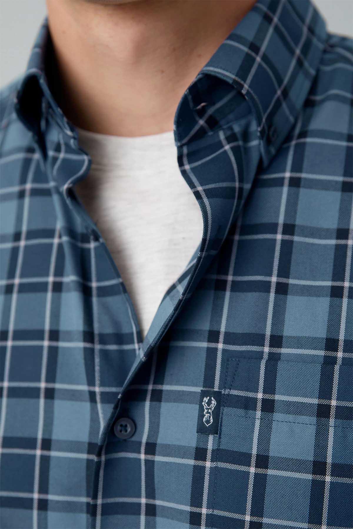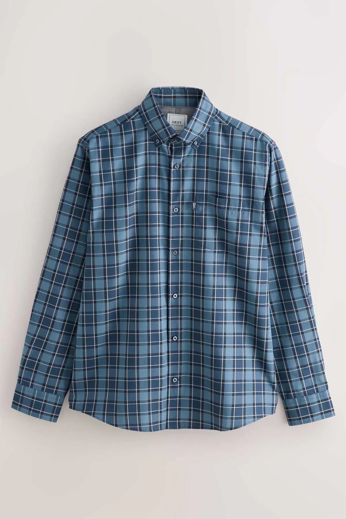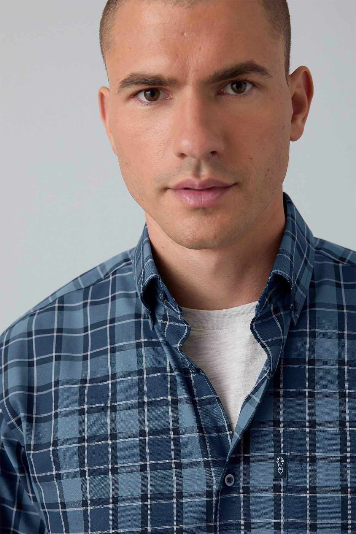 Blue Tonal Check Regular Fit Easy Iron Button Down Oxford Shirt