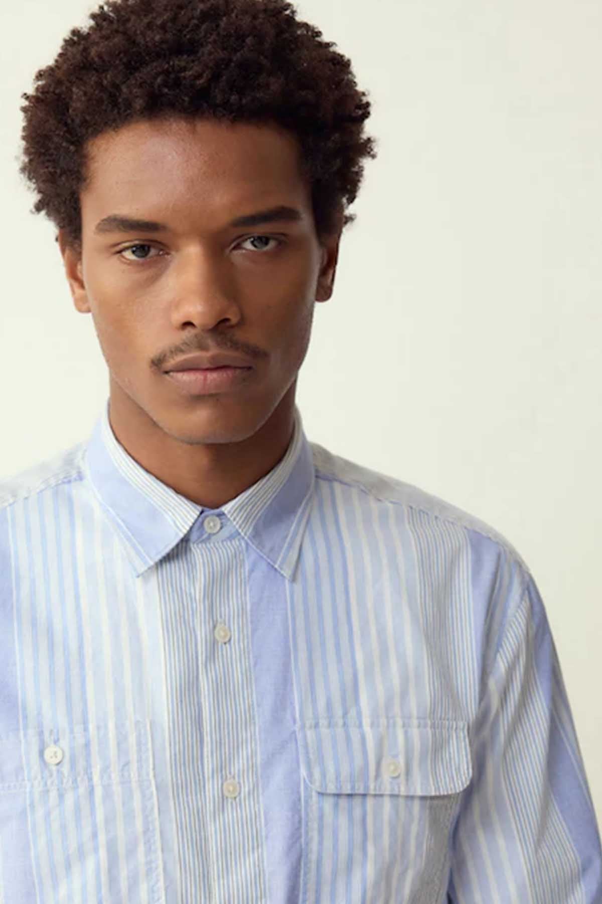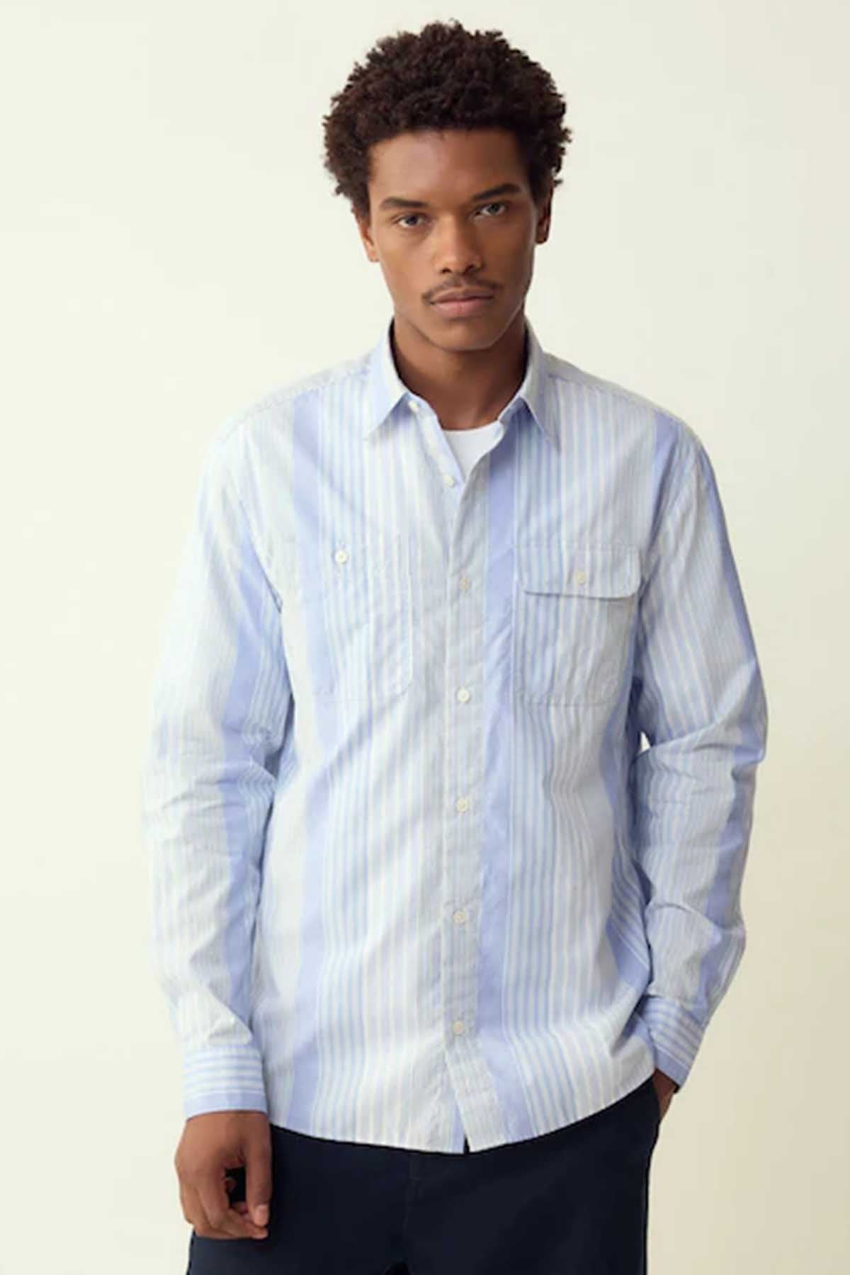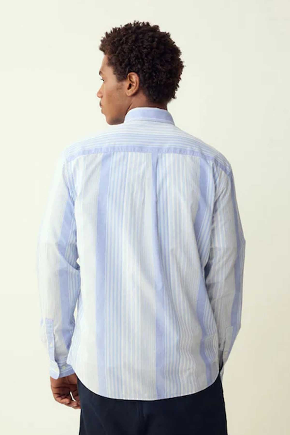 Blue Variegated Stripe Long Sleeve Shirt