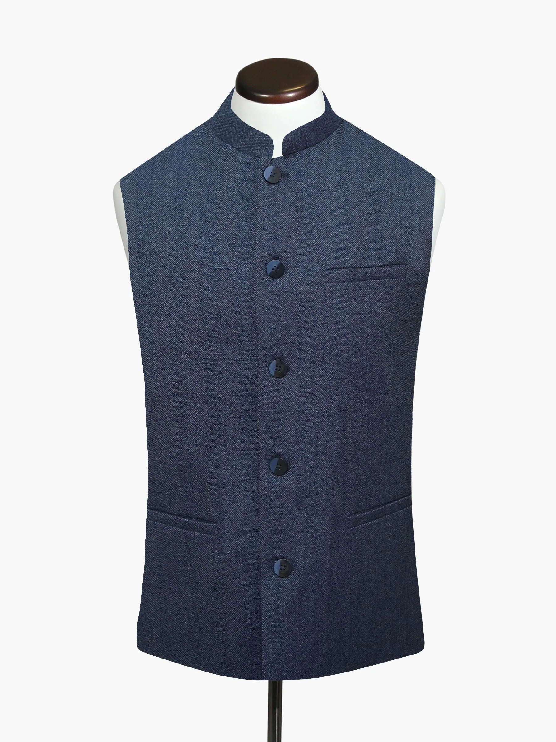 Blue Wool Herringbone Structured Waistcoat - Sartoria