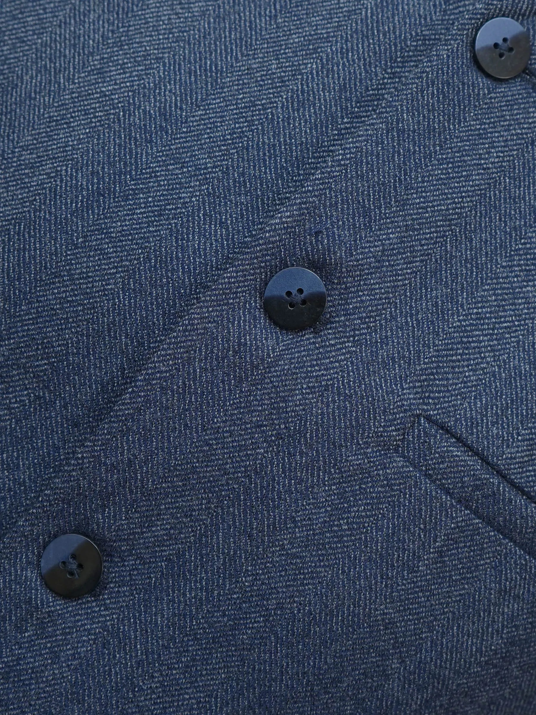 How should I clean this wool waistcoat? We recommend professional dry cleaning only to preserve the wool fabric and herringbone structure.