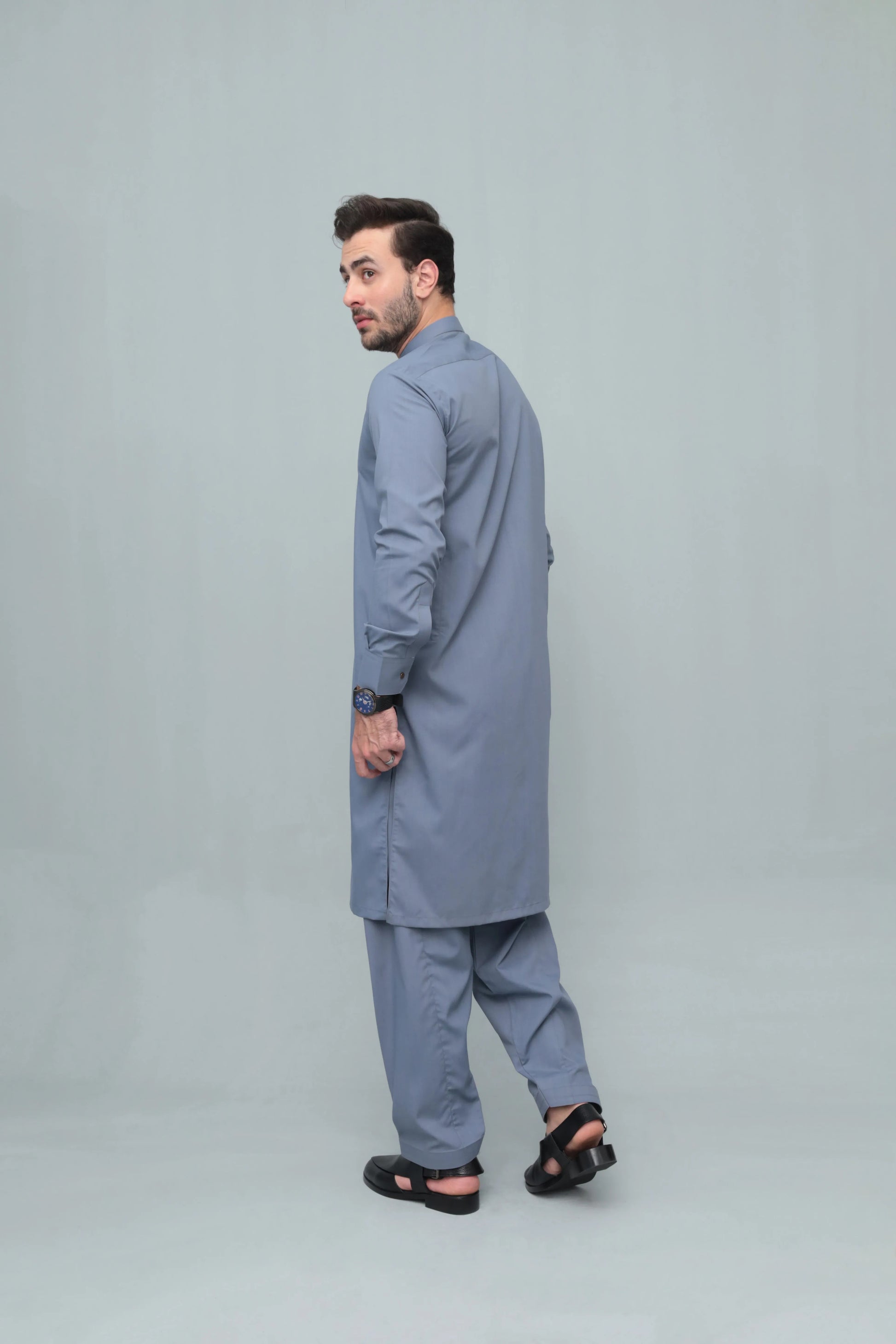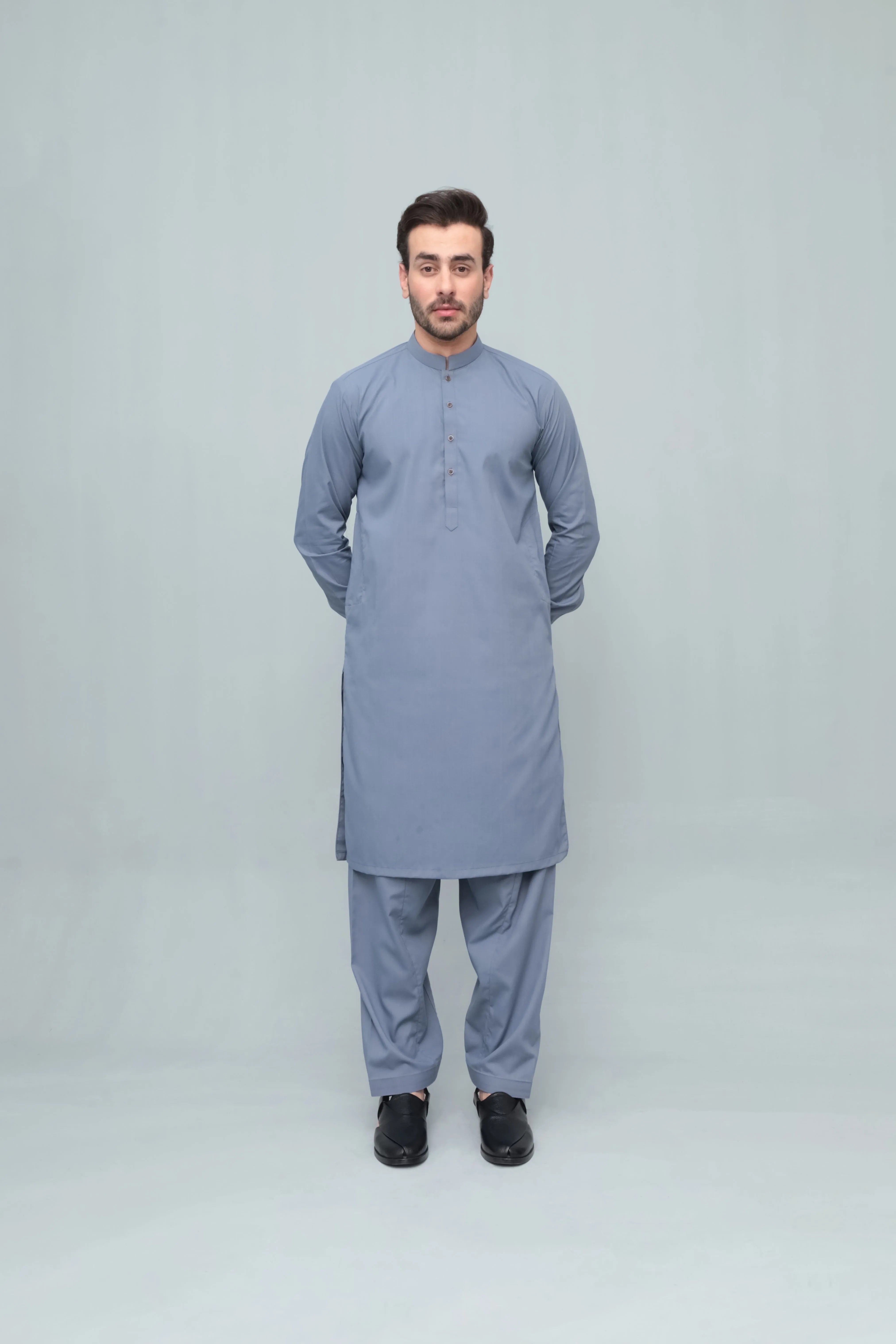 Bluish Gray Blended Kameez Shalwar- Men