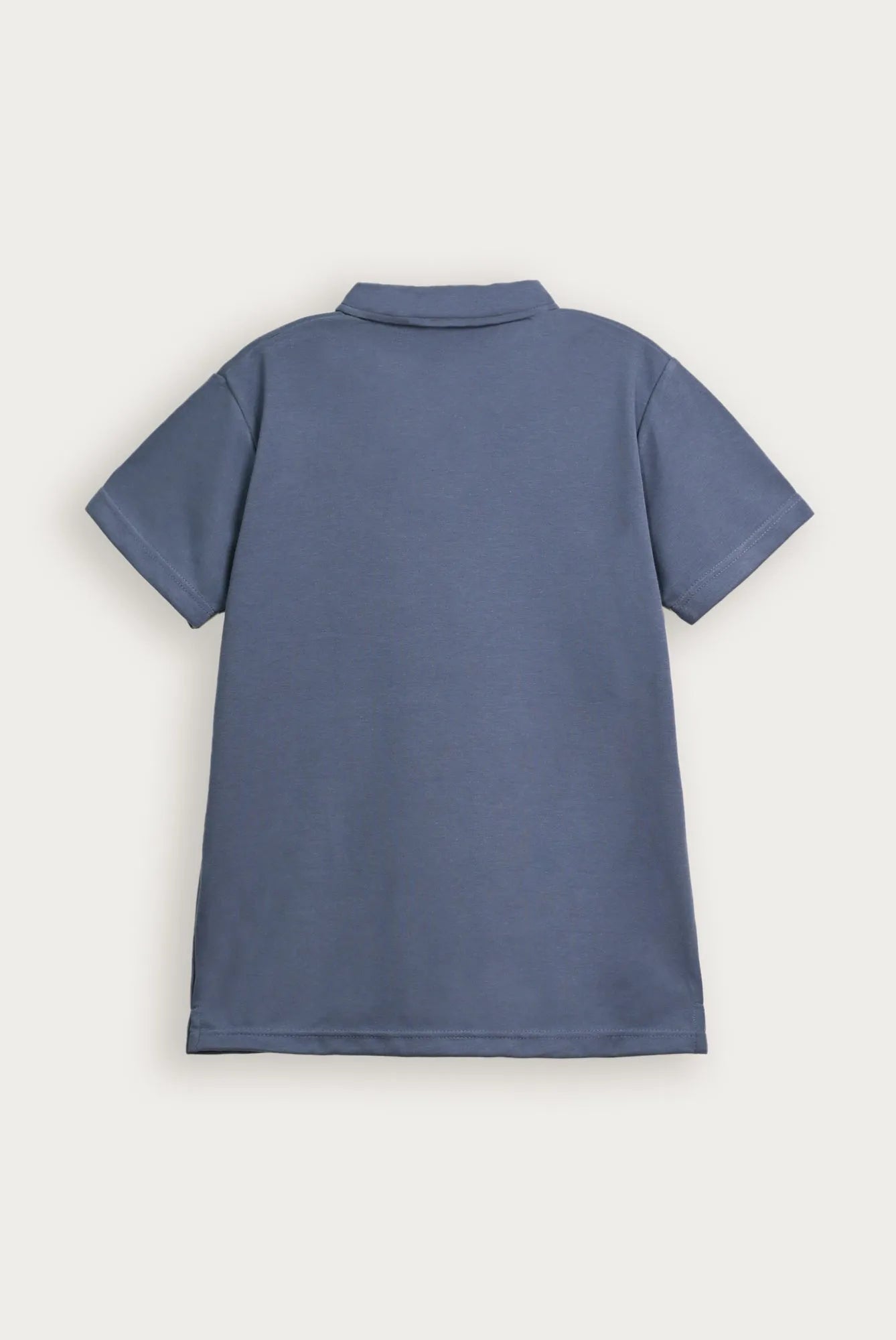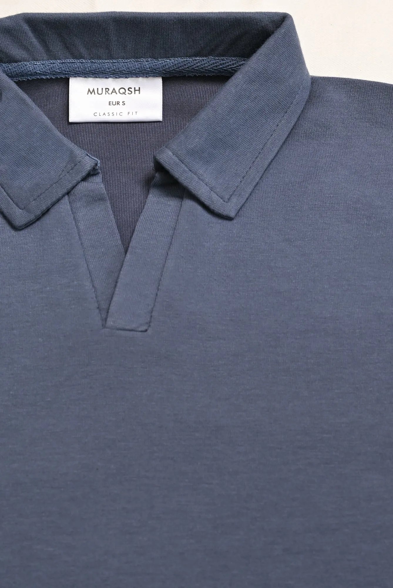 Bluish Grey Interlock Johnny Collar Polo - Smart Fit - Men