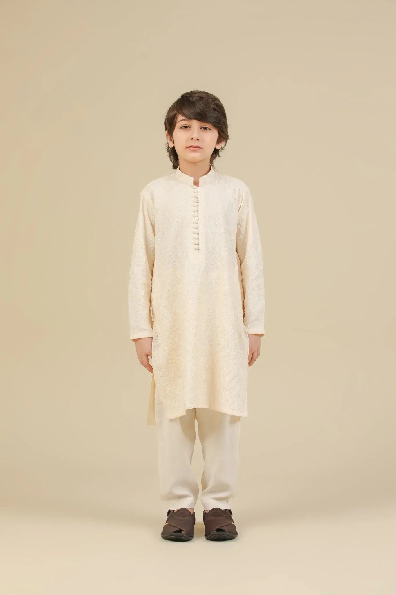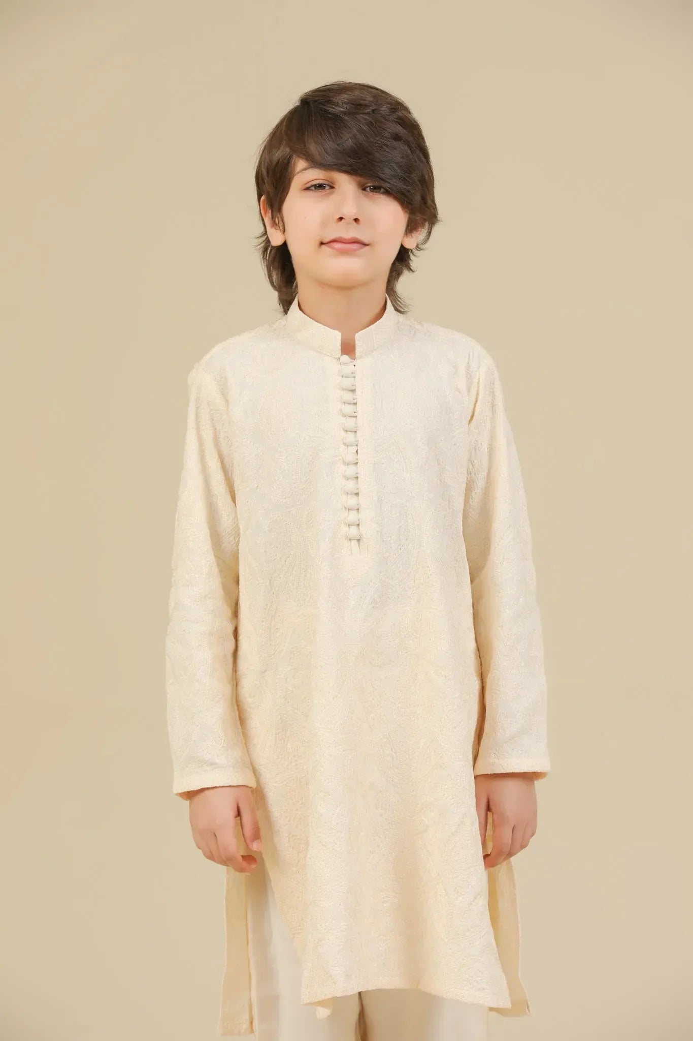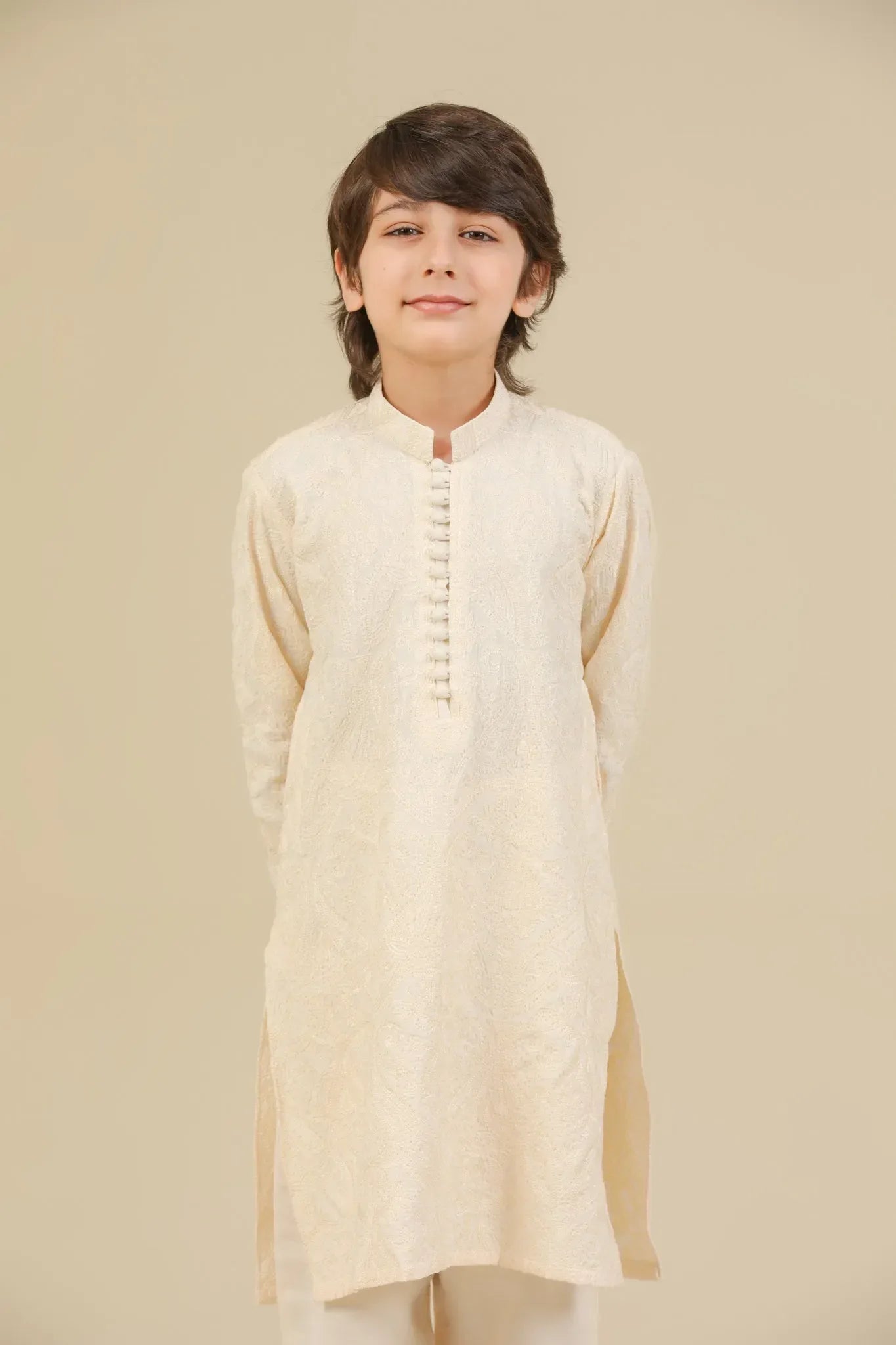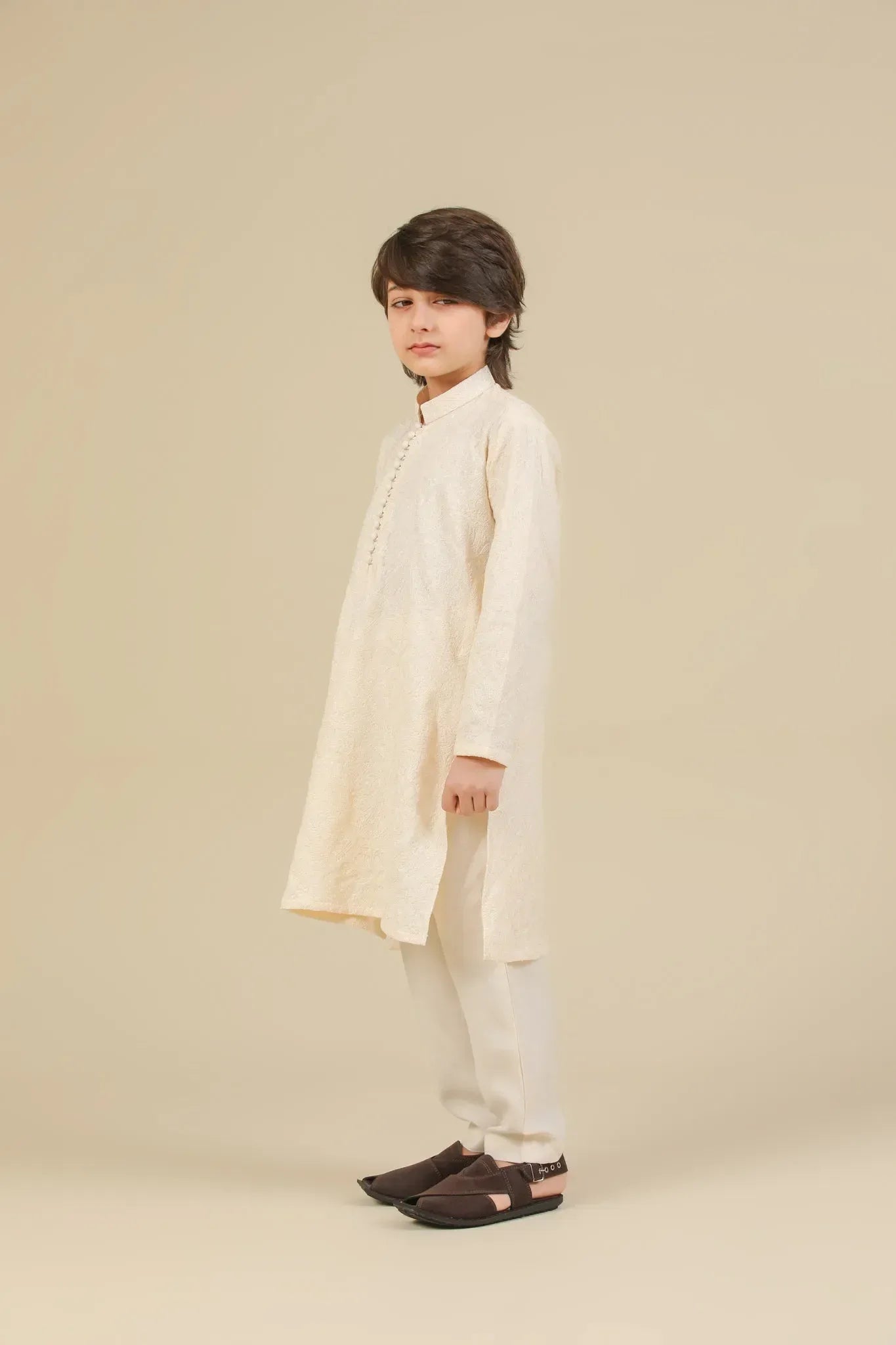Andaz - Bosky White Raw Silk Embroidered Kurta Trouser - Kids