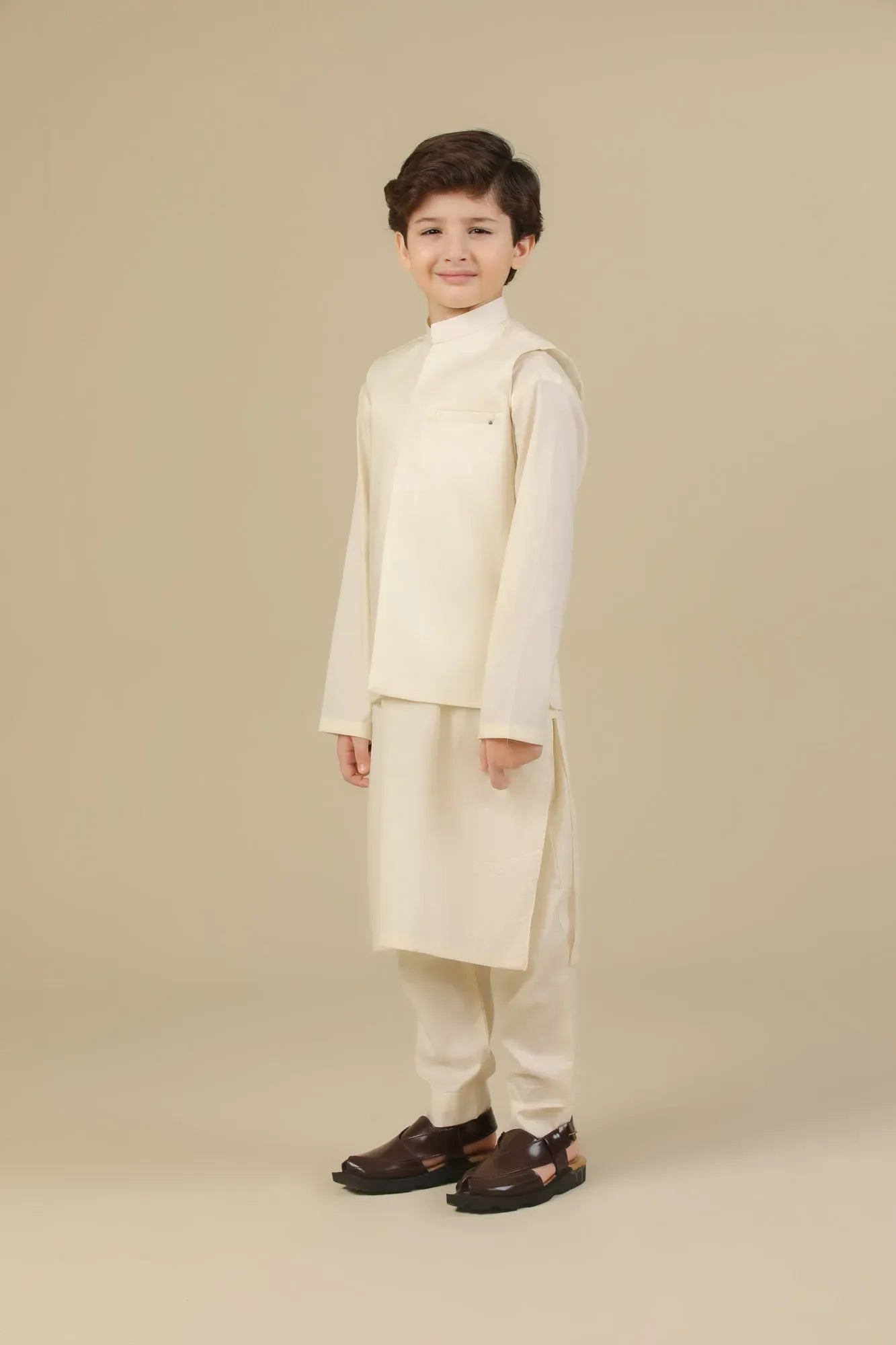 Bosky White Soft Cotton Kurta Trouser with Waistcoat - Kids
