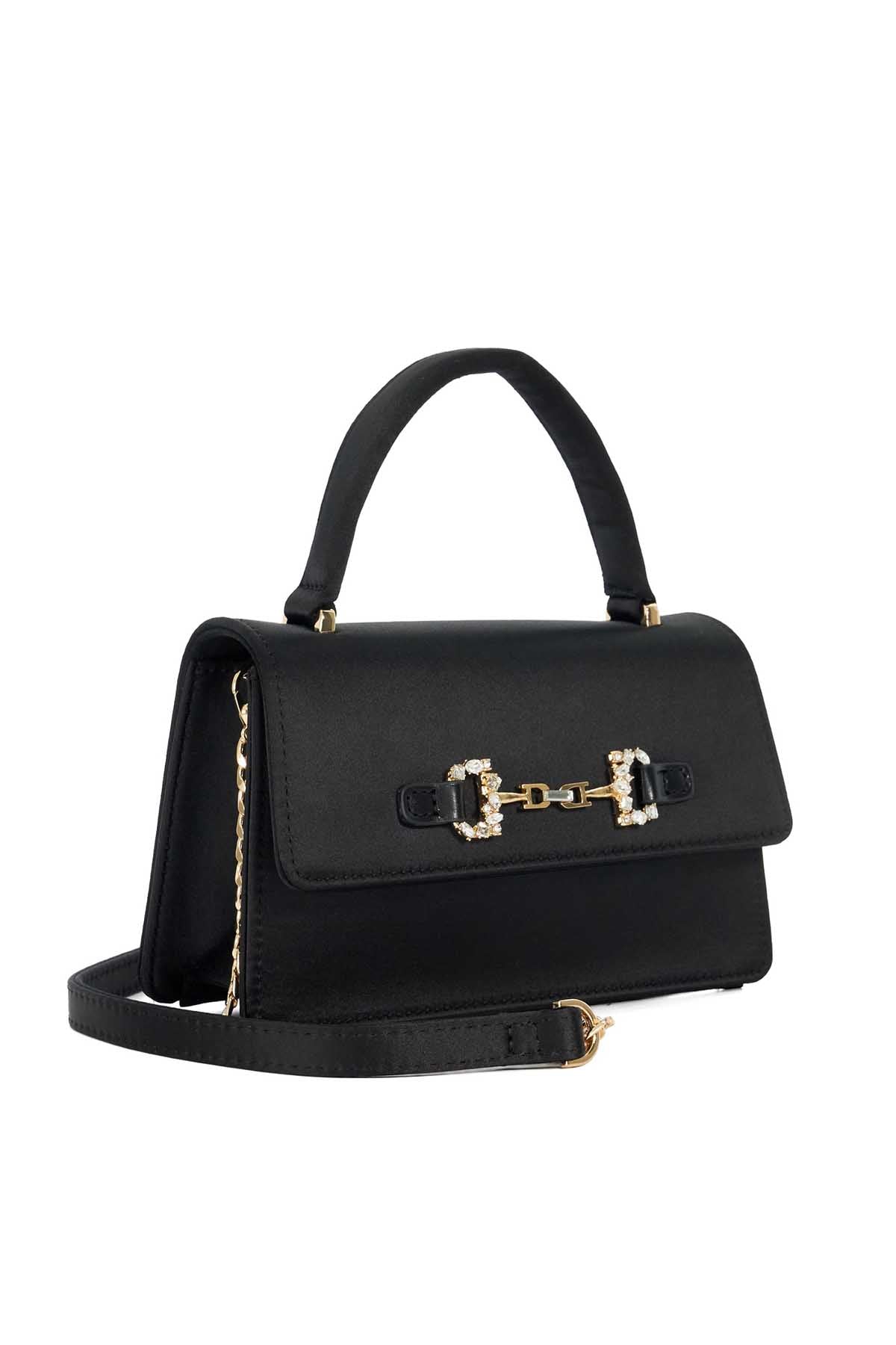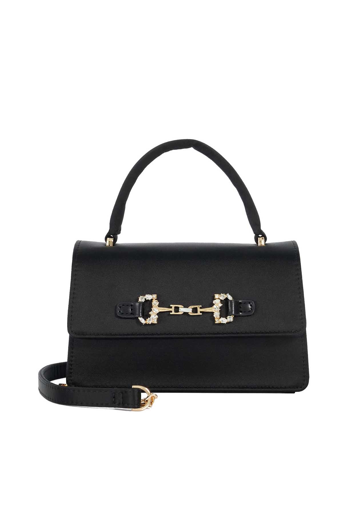 This Elegant Top Handle Bag Design Features Our Recognisable Signature Interlocking Double D Snaffle Trim That Has Been Embellished With Diamante Detailing. The Magnetic Closures Opens To Reveal Monogrammed Lining With A Side Slip Pocket. Brady Can Be Hand Held Or Carried Cross Body With The Detachable Part Chain Handle.