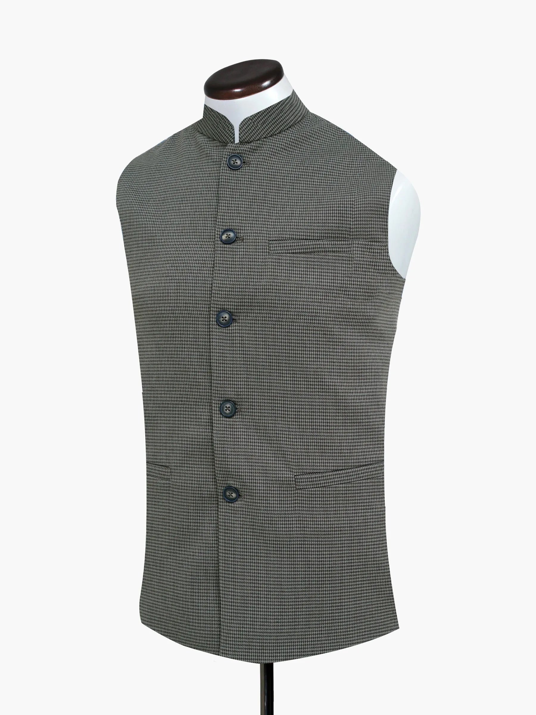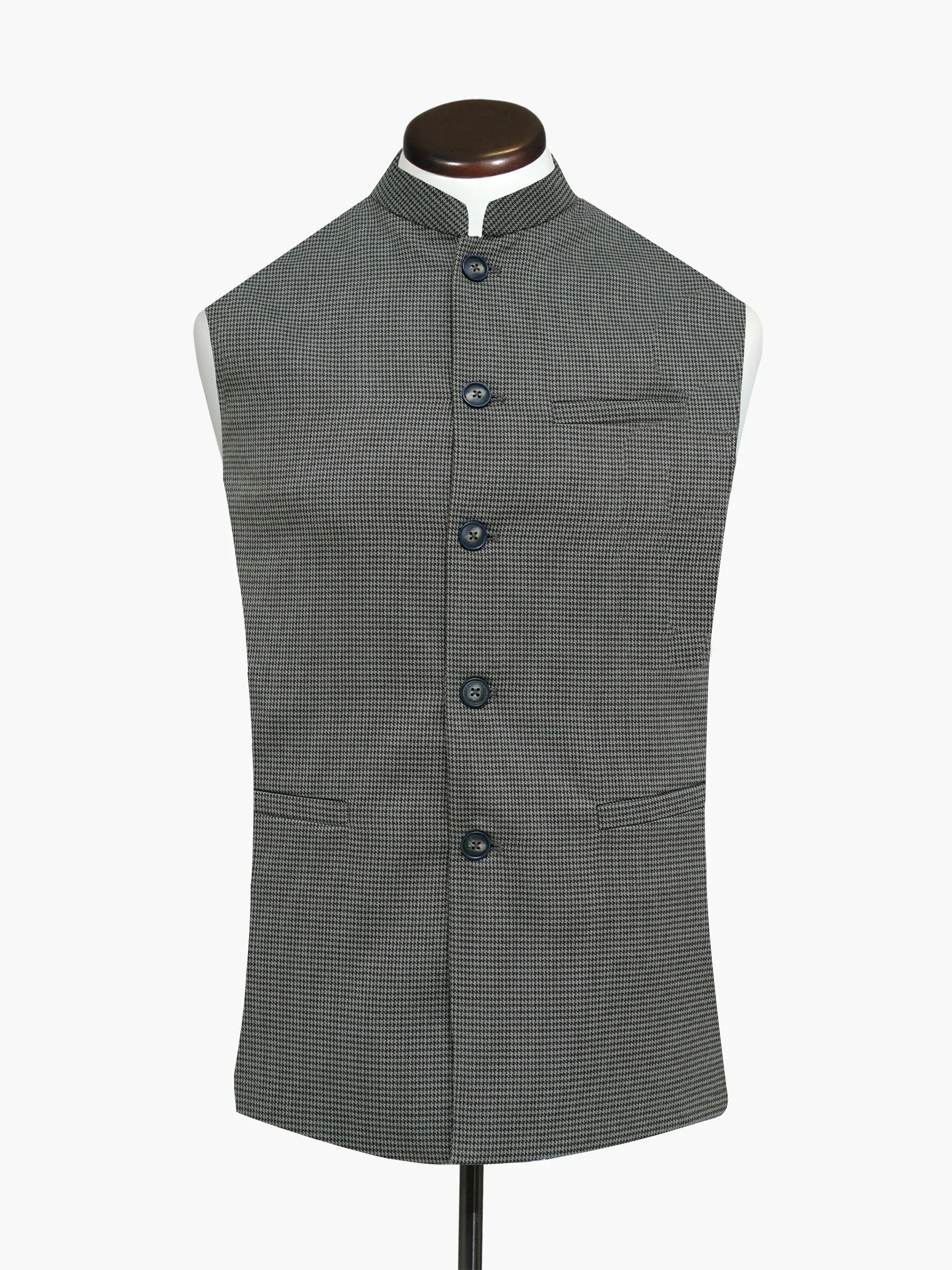 Elevate your formal style with this classic brown houndstooth waistcoat. Designed with a structured fit, button closure, and sharp tailoring, it’s perfect for pairing with light or dark color shalwar kameez