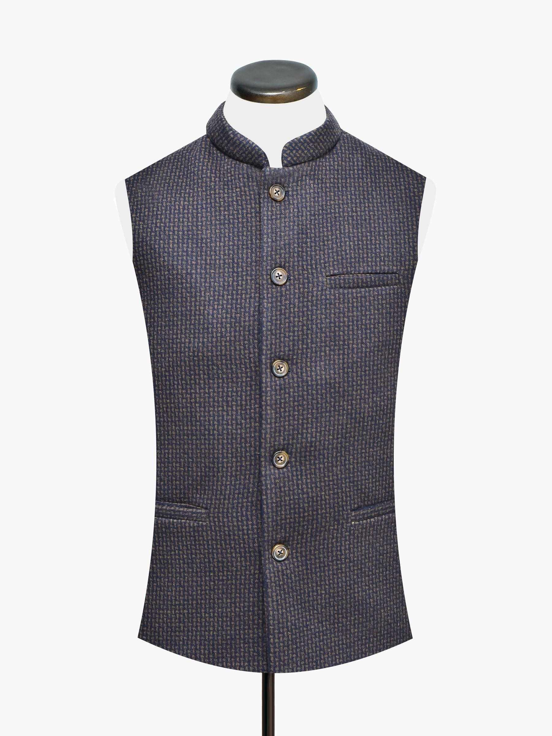 Elevate your style with brown & navy blue wool patterned waistcoat. Crafted from wool blended fabric, it features a subtle pattern, a tailored fit, and a sleek button front. Perfect for formal events or adding a refined touch to smart-casual outfits, this versatile waistcoat ensures you look sharp and polished.