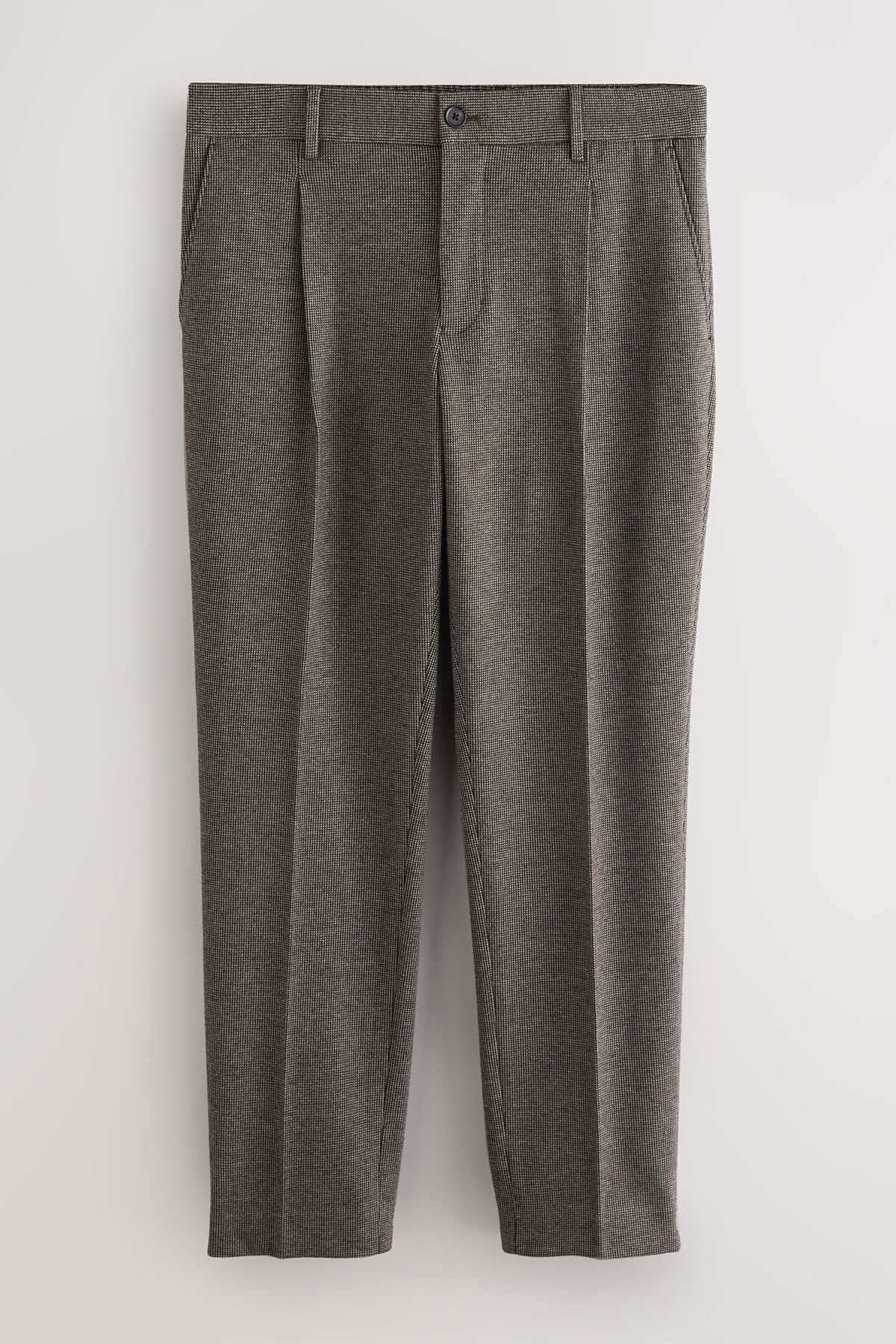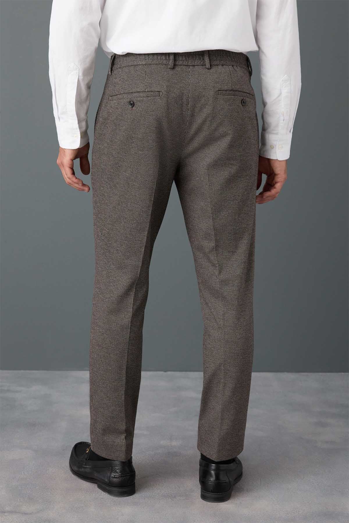 Brown Slim Fit Smart Elasticated Back Textured Trousers with Stretch