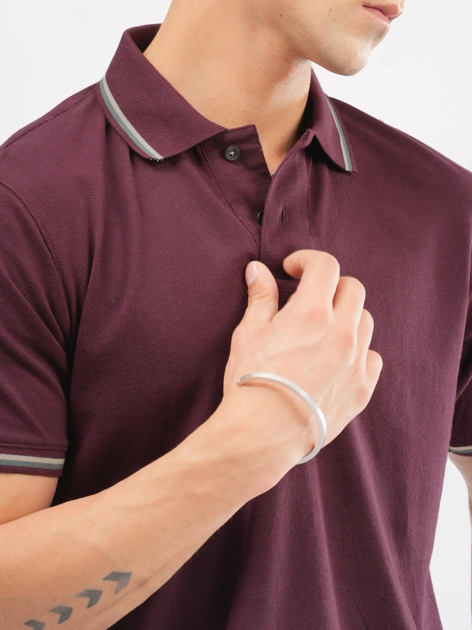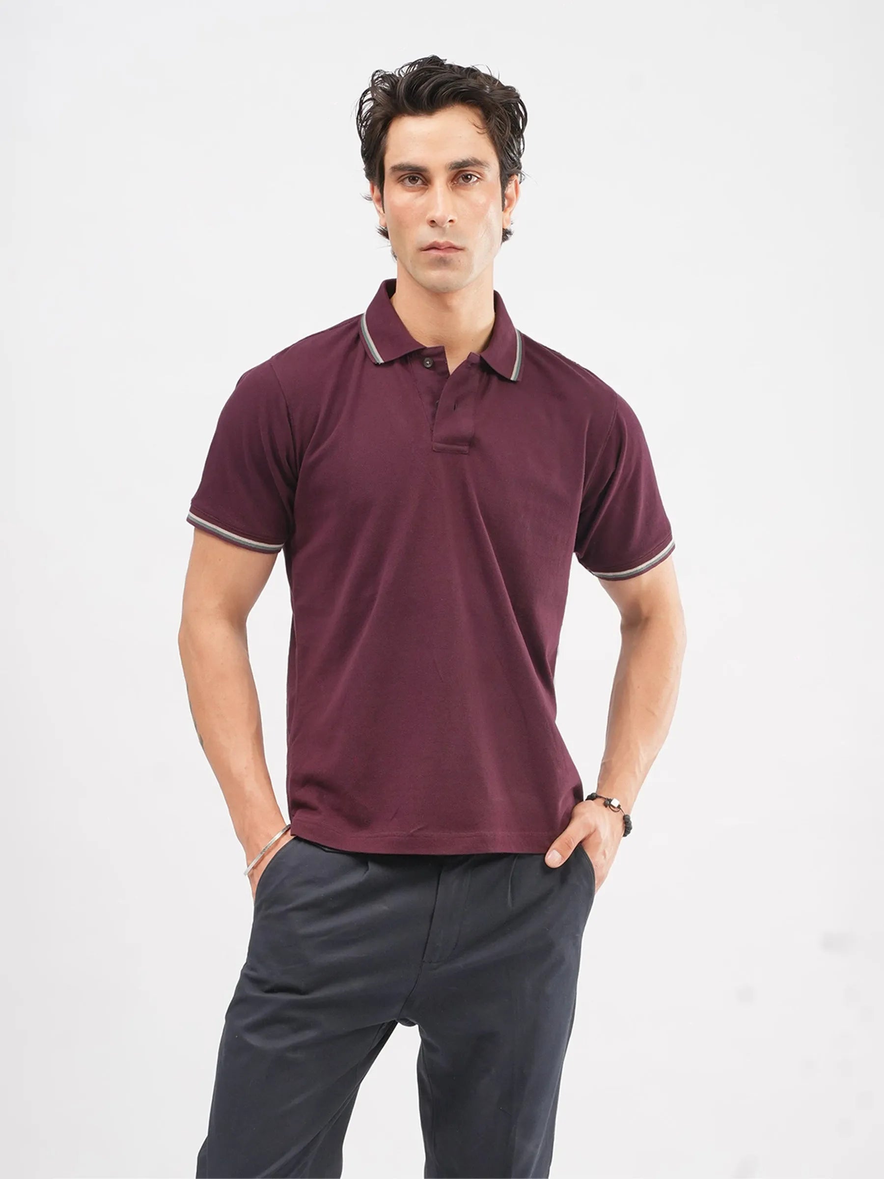 A smart everyday essential, this burgundy pique polo features a multicolor tipped collar that adds a subtle pop of style. Made with breathable pique fabric for comfort and durability, it’s perfect for warm days and casual outings.