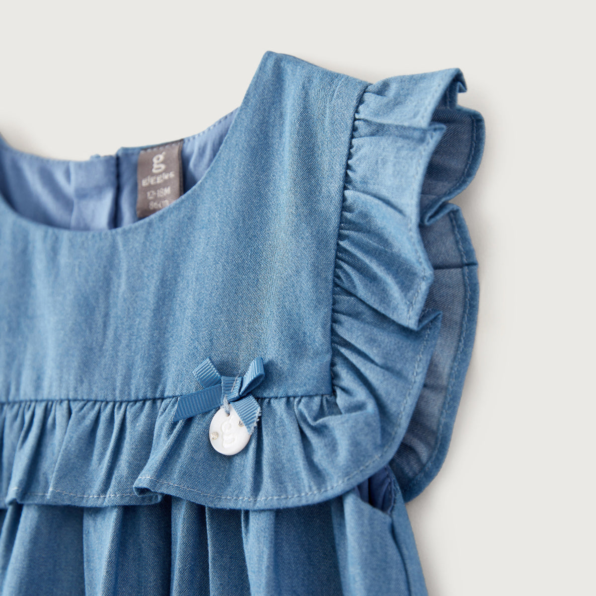 Premium quality Babyshop Girl Chambray Dress With Frilly Yoke Blue color
