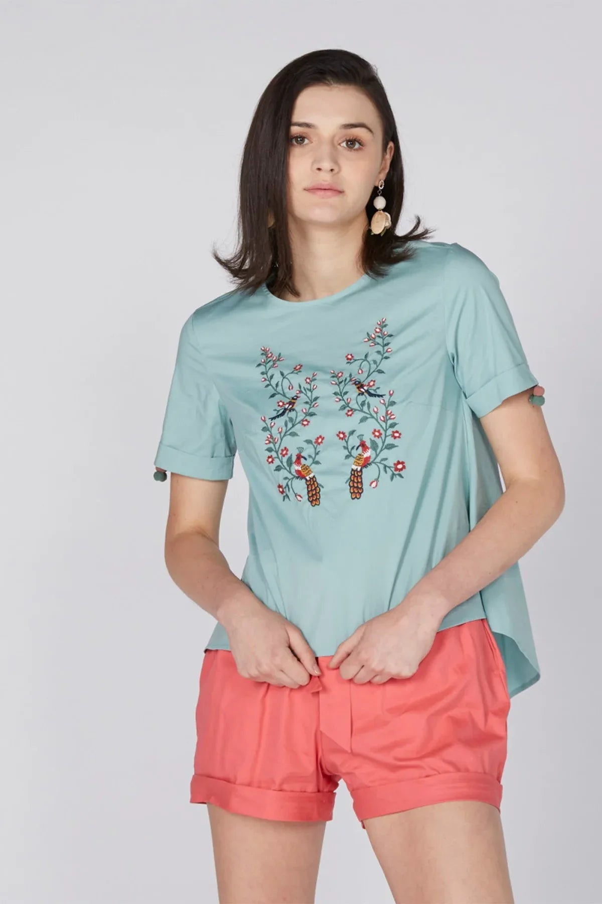 Embroidered Top with Round Neck