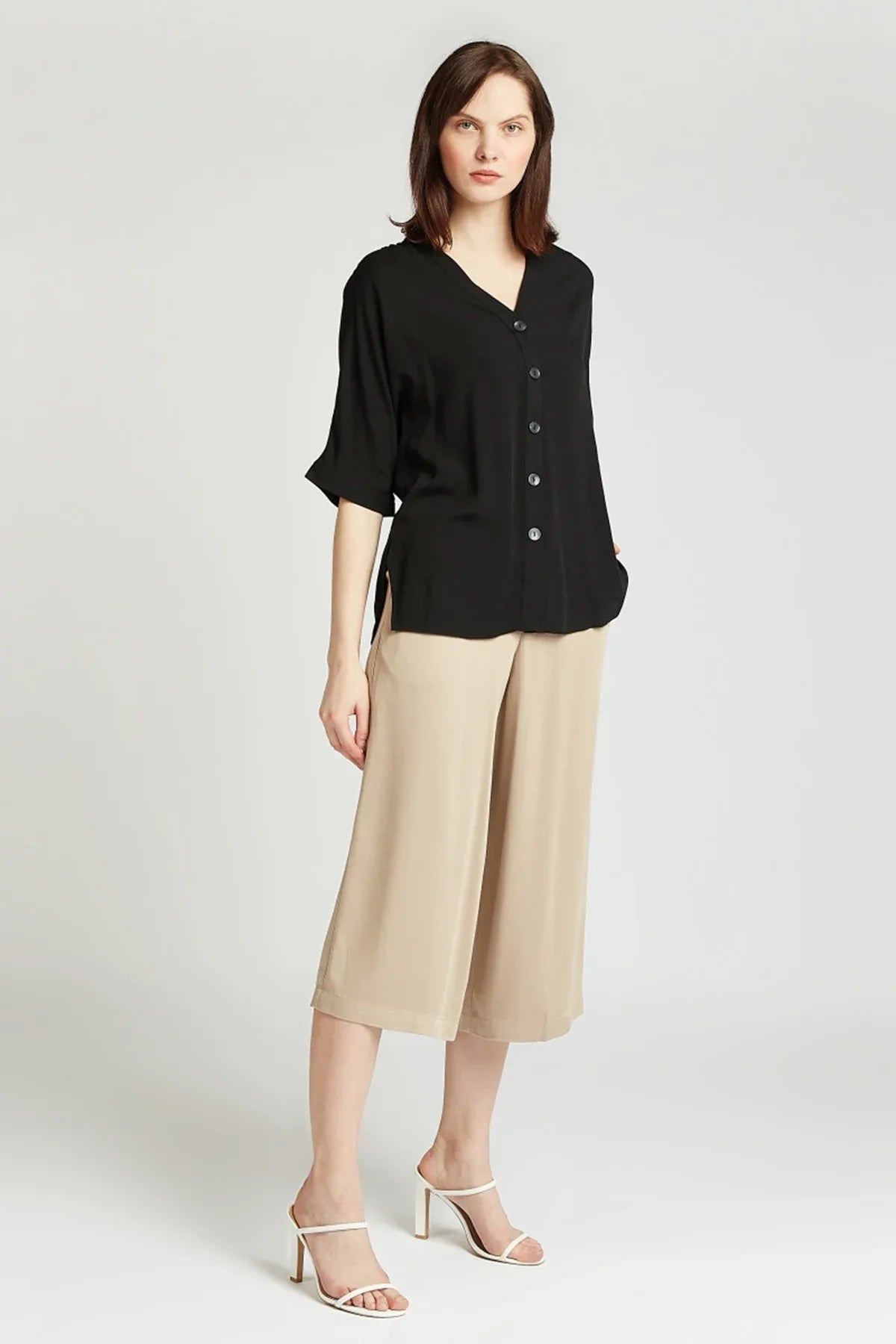 Slim Fit Textured Culottes with Pocket Detail and Belt Loops