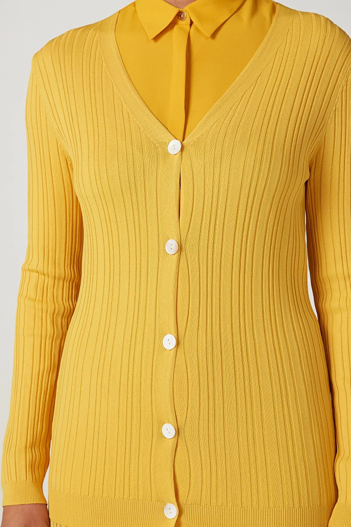 Premium quality Splash Women Textured Cardigan with V-neck and Long Sleeves Yellow color