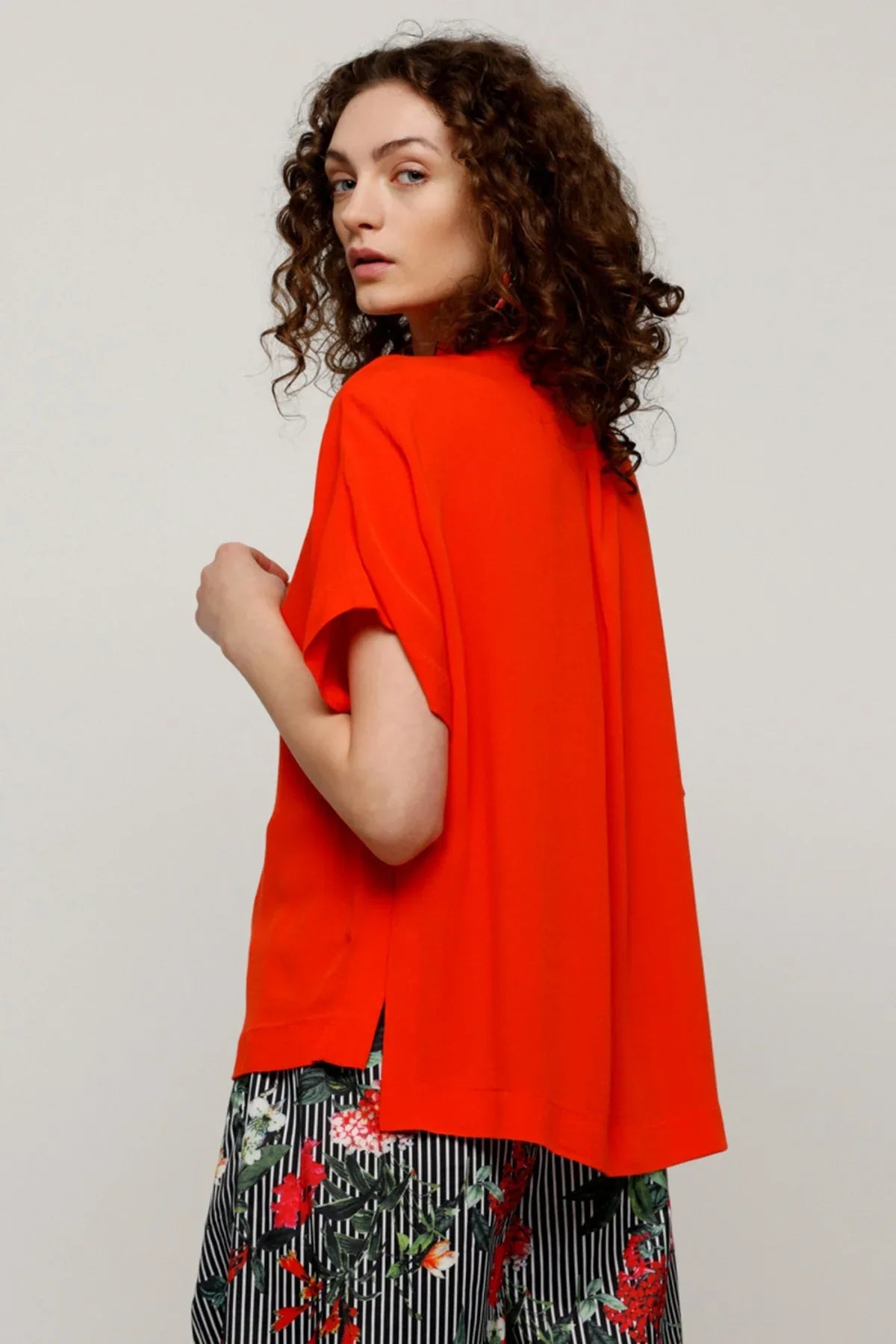 Extended Sleeves Top with Spread Collar and High Low Hem