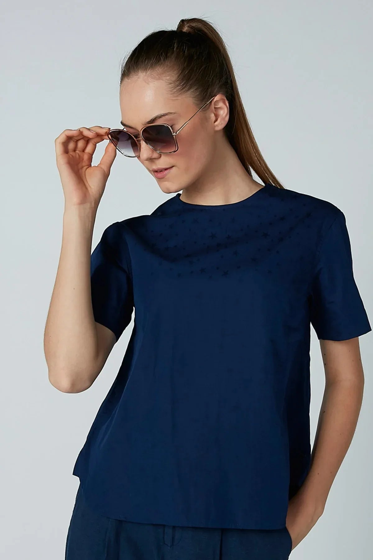 Printed Top with Round Neck and Short Sleeves